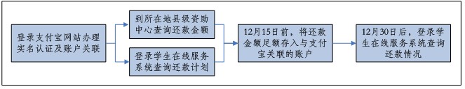 支付宝会根据国家开发银行规定的扣款日期提前5天通过手机短信通知您进行支付宝账户的充值,建议您及时更新在支付宝绑定的手机号码。您在还款日期前,可以通过网上银行、支付宝卡通、网点充值、消费卡充值等方式将还款资金充值到您的支付宝账户,国家开发银行将委托支付宝公司在扣款日期从您的支付宝账户中扣取相应的资金转至国家开发银行。