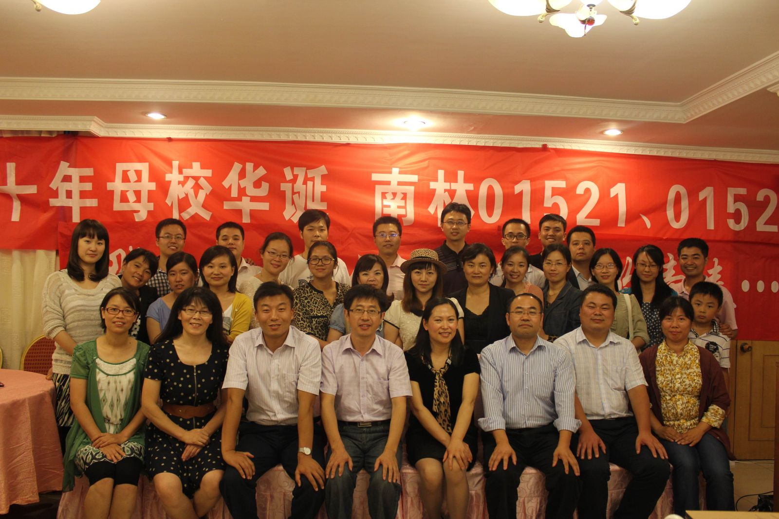 9月22日,我院01级会计班01521、01522班同学从各地赶赴南京,举办了毕业7周年暨庆祝母校110周年校庆聚会。下午,校友们在太阳雨酒店召开了师生座谈会。学生部部长孙学江、经管院党委书记高晓琴、副书记兼副院长刘子超、南方学院副院长杨祖平、会计系主任乔玉洋等领导及部分教师参加了座谈会。