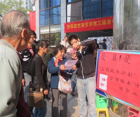 财会系党支部2012年10月27日组织了一次主题为“是真是假,锁金社区真假币识别”活动,活动旨在为锁金社区的居民,尤其是老年人普及真假币识别的知识。
