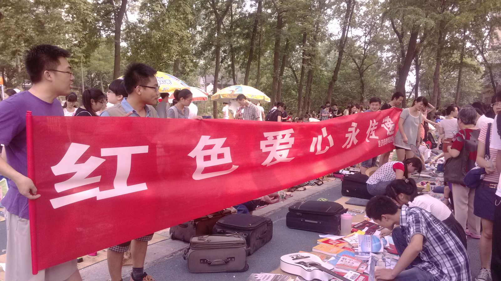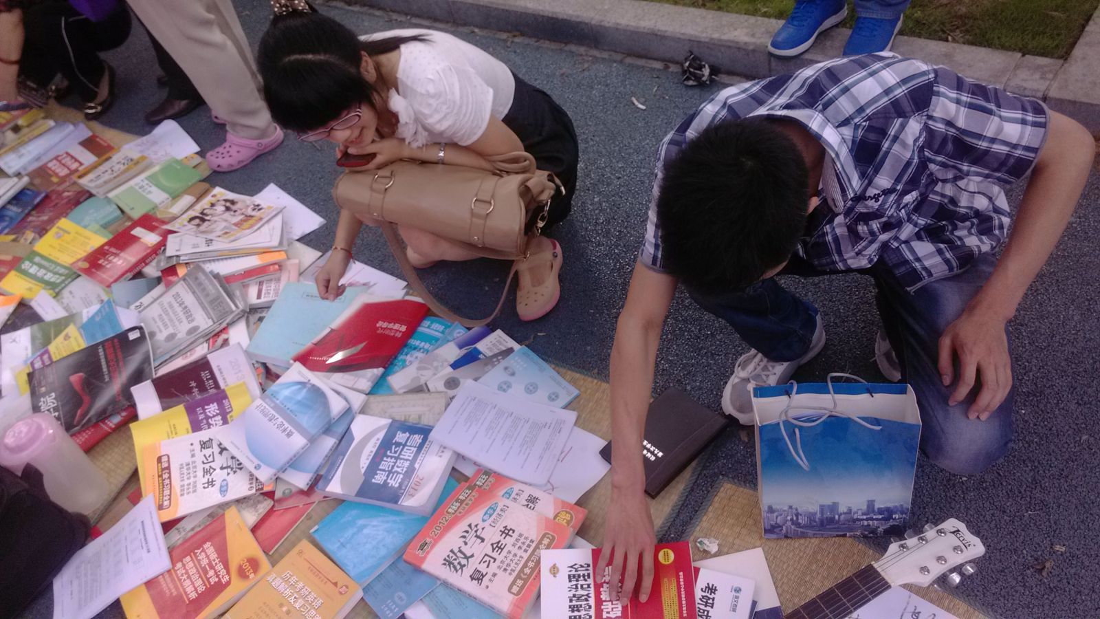 5月25日是学校一年一度的毕业生离校物品变卖交易会,经管院五名党员干部在青年广场摆设摊点,将从学院党委各学生支部收集来的书本、台灯、水壶等摆在摊前,凡是需要者,将自己的姓名学号联系方式登记在册,就可以免费拿走。当然也有一个条件:领取人要在自己毕业时,也要留下一件物品,将爱心传递给下一届的学弟学妹。尽管当天的天气又闷又热,不过党员们还是乐在其中,陆陆续续不断地有同学来这儿挑选书本并做了登记,偶尔还会有附近的老年人过来瞧上几眼!