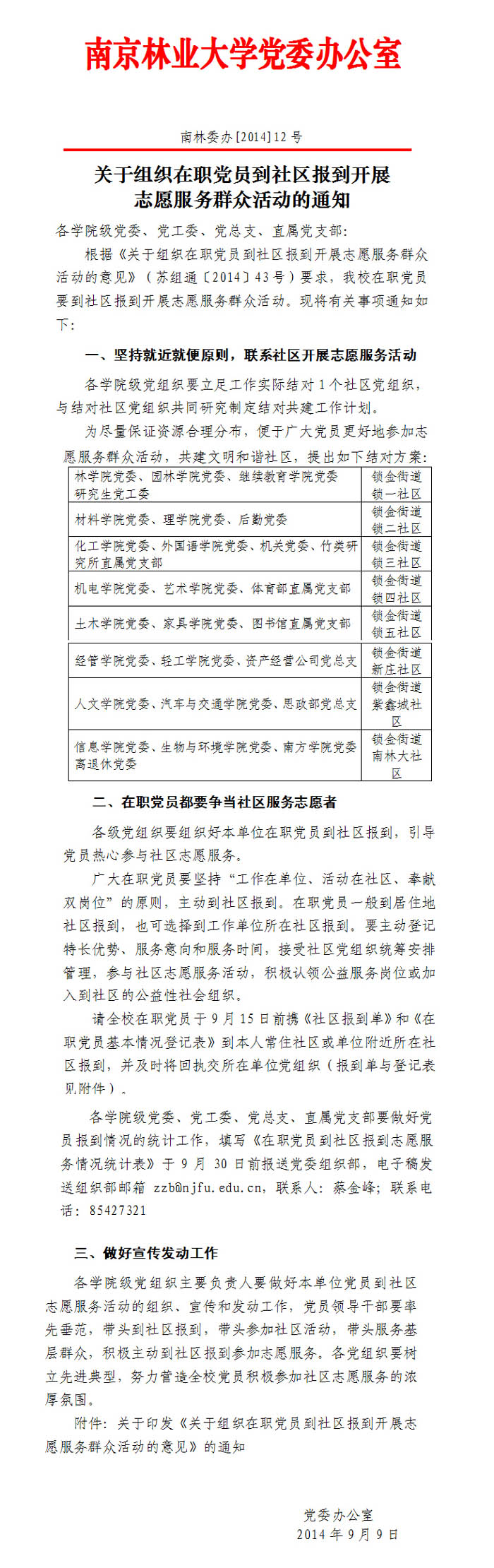 关于组织在职党员到社区报到开展志愿服务群众的通知
