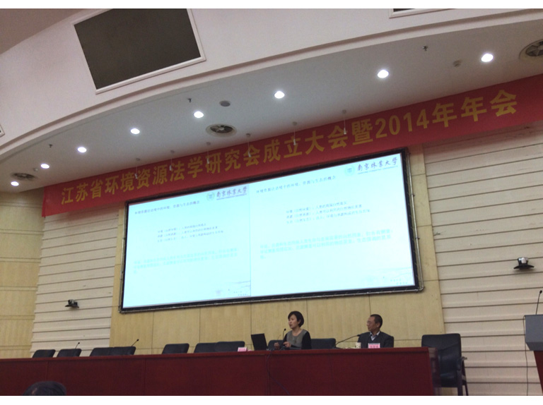 2014年11月15-16日,江苏省法学会环境资源法学研究会成立大会暨2014年年会在河海大学召开,本次年会的主题是“新环境保护法实施与江苏环境资源法治建设”。来自全省高校、法院、检察院、环境执法部门的80多名专家学者参加了此次会议。我院张红霄教授作了题为《环境资源问题的法经济学思考》的大会发言。论文《基于比例原则的公益林政府补偿制度研究》(汪海燕、张红霄)、《林木采伐许可法律属性与规制探讨》(杨萍、张红霄)分获二、三等奖。法学专业徐静文、费霖、王洋、陈娜、王克等同学也参加了会议。 江苏省环境资源法学研究会隶属江苏省法学会,挂靠河海大学,以促进江苏省环境资源法学界学术交流,加强理论界与实务部门的互动为主旨。在成立大会上,选举产生了会长、副会长以及首届理事会的常务理事、理事。我院张红霄教授当选副会长,杨萍老师被选为第一届理事会常务理事。