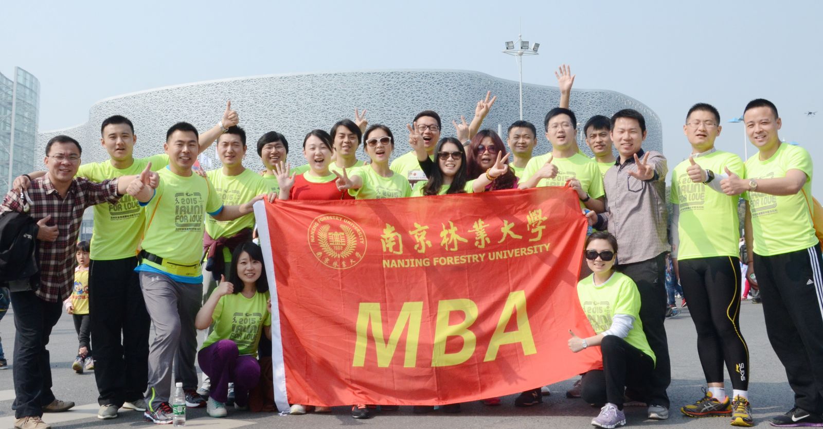 2015年3月29日,在南京林业大学MBA中心和MBA联合会的精心组织下,南京林业大学2014级MBA学员参加了苏州金鸡湖国际马拉松比赛,此次参赛不仅锻炼了大家的身体,愉悦了心情,更加展示了南京林业大学2014级MBA学员和谐团结、昂扬向上的精神面貌。 早上8:30,随着枪声的响起,大家雀跃着、呐喊着、涌动着。我校MBA学员三位种子选手贺玺、沈振宇、刘轶率先冲出跑道,奋力奔跑。其他学员参赛助威、紧随其后,为运动加油、更为快乐增力。南林大MBA全体学员坚持跑完了全程,体现了南林大MBA勇于进取、顽强拼搏的精神。汗水、笑声、感动......给我们留下了难以忘怀的一幕幕。