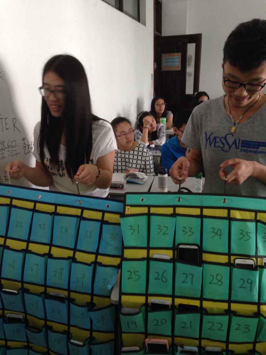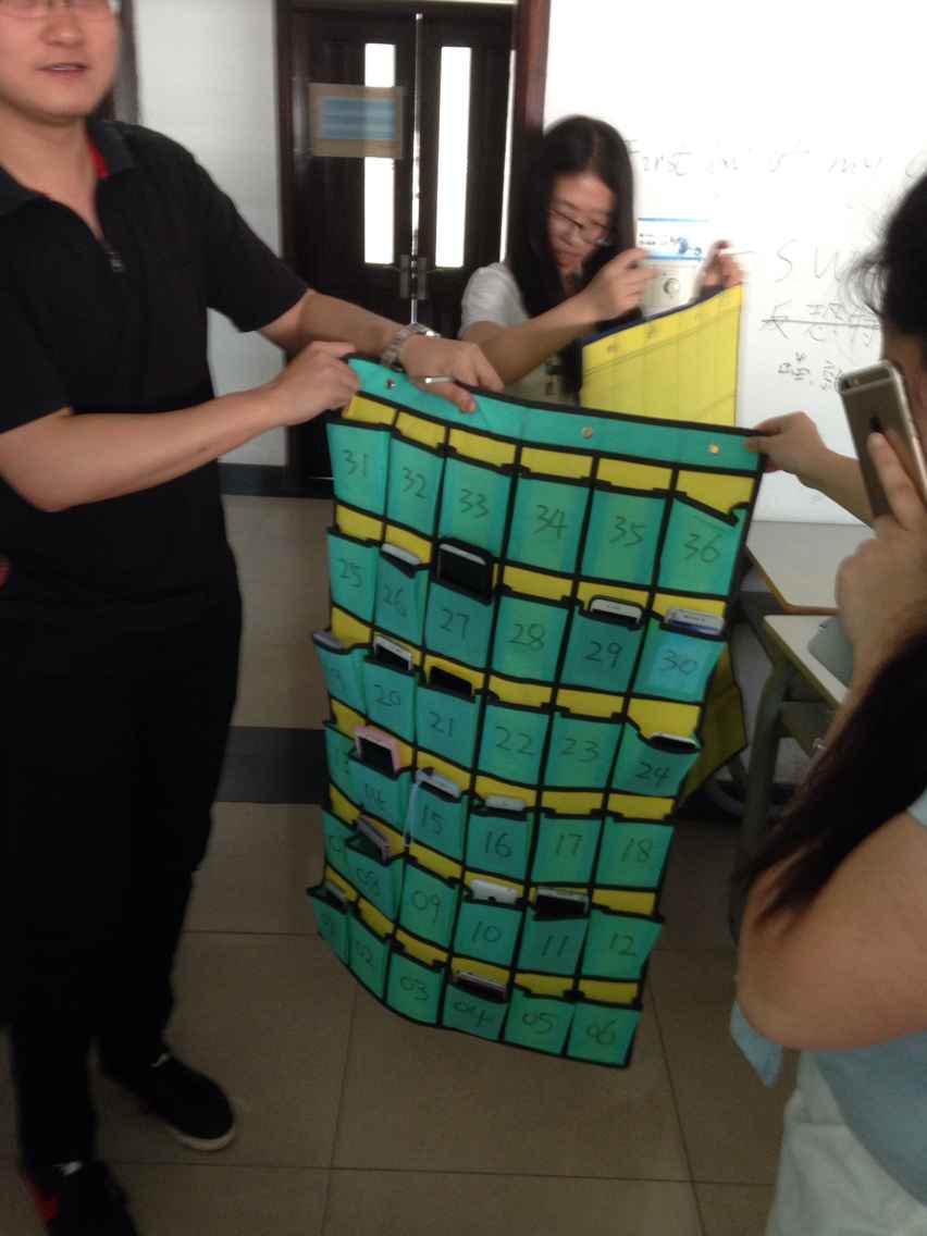 课前,学生党员们自觉将手机放在收纳袋中贴有自己学号的袋子里,在他们的带动下,很多同学也纷纷将手机放入事先准备好的手机收纳袋中。