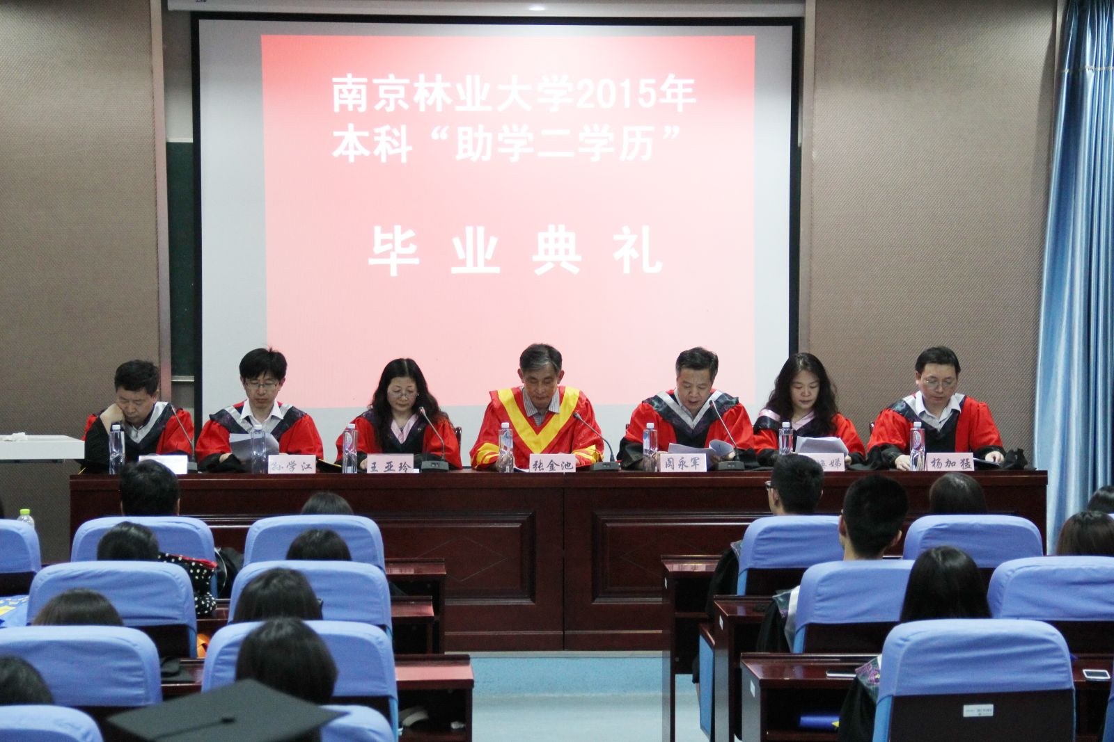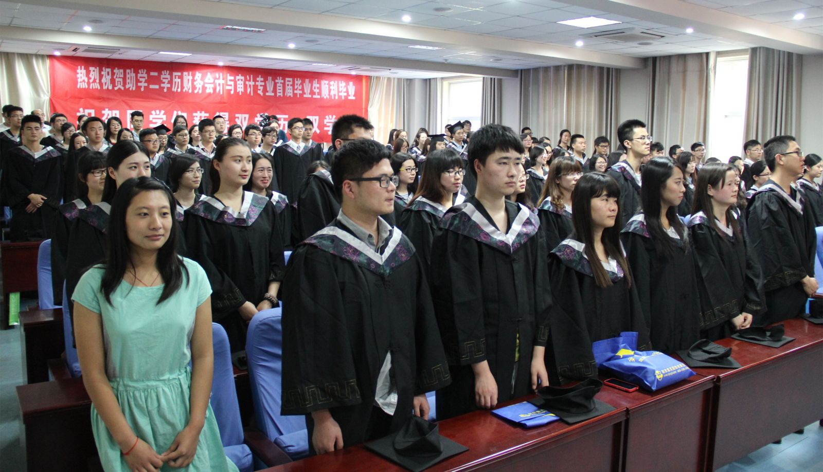 6月14日下午,我校隆重举行2015届财务会计与审计专业本科 “助学二学历”毕业典礼。副校长张金池,教务处处长闵永军、学工处处长孙学江、财务处处长陈焕娣,继续教育学院院长王亚玲、副院长梁礼才,经济管理学院副院长杨加猛等出席毕业典礼。 典礼由继续教育学院院长王亚玲主持。梁礼才副院长和闵永军处长分别宣读了关于157名同学毕业和授予管理学学士学位的决定。主席台成员为毕业生颁发毕业证书和学位证书,并为其拨穗正冠。经济管理学院财务与会计系副主任宋淑鸿代表教师发言;财务会计与审计专业助学二学历学生卢一菲代表毕业生发言。最后,张金池副校长致辞,希望同学们在今后的工作和学习中能继续秉承南京林业大学“团结、朴实、勤奋、进取”的精神,不断学习,勤奋工作,以优异的成绩回报母校、回报社会,并努力实现自己的人生梦想。 我校经济管理学院财务会计与审计专业本科助学二学历,于2012年6月经江苏省教育考试院批准,同年9月起招生。2012年招生录取173名学生,2013年招录237人,2014年招录236人。 目前在籍学生600多人,其中有9名研究生报学二学历。2015年新增金融专业本科助学二学历,续招财务会计与审计专业,校本部现已有157名学生报名。 2015届财务会计与审计专业本科助学二学历157名毕业生中,授予管理学学士学位157名;学生课程考试通过率达96%,毕业率达91%,毕业生学位授予率达100%;考取南京大学、复旦大学、上海交通大学、北京师范大学、河海大学、中国农业科学院等211以上高校和科研院所研究生6名,考取我校研究生5名,保研5名;通过财务会计与审计专业考取银行职员11名、公务员4名、事业单位工作人员4名;党员人数由入学初的3名发展为目前的56名。
