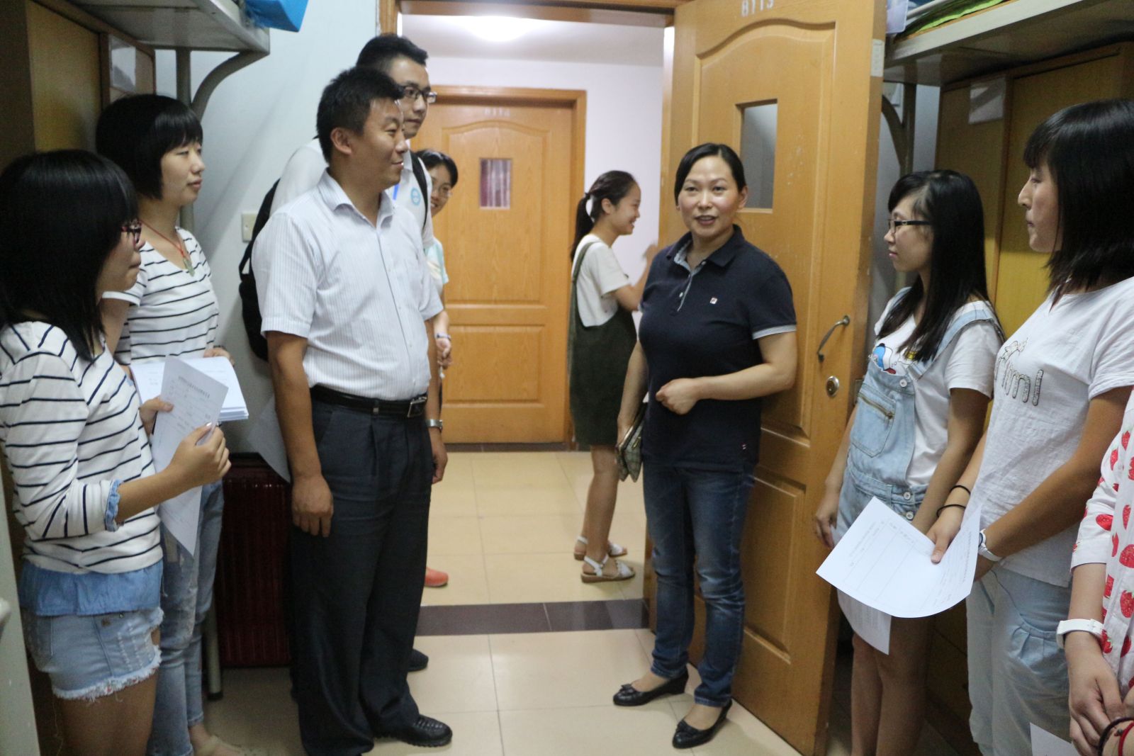 9月12日,我院喜迎443名2015级新生。他们经过高考的洗礼,洋溢着青春的朝气,满怀对未来的憧憬走进了南京林业大学的校门。 为做好今年的迎新工作,经济管理学院党委书记高晓琴,党委副书记、副院长刘子超提前召开了经济管理学院关于2015年迎新工作计划的会议,对迎新各项工作进行了细致周密的部署,提出了有序、高效、热情、周到的明确要求。迎新当天,院团委书记陈艾芳,辅导员胡潇潇、李政、韩艺飞在新生报到处指导开展迎新工作。院领导来到新生报到处看望2015级新生,了解新生报到相关工作情况。 今年我院新生报到入学程序简化、高效。新生先凭身份证和录取通知书到报到处核实身份,然后领取宿舍钥匙,平均3分钟就可以完成报到手续。在报到点,箭头提示、绿色通道、缴费处、志愿服务等标志醒目,秩序井然,均未出现长时间排队情况。校园的一切都让新生们充满好奇,随处可见我院迎新工作人员和学生志愿者温暖的笑脸、忙碌的身影、热情的引导,耐心解答新生和家长的问题。 截至晚上七点,伴随着最后一位新同学的到来,经济管理学院2015级迎新工作画上了完美的句点。短短一天的时间里,见证了我院全体同学的热情和体贴、感恩和无私,也看到良好的迎新风尚正被一届届传承下去。 当天迎新结束后,院党委书记高晓琴,副书记、副院长刘子超、团委书记陈艾芳以及15级辅导员韩艺飞老师分别前往新生宿舍八栋、十二栋探望15级新生,并表达了对新生的希冀。除此之外,院领导细心询问了学生的宿舍情况,希望学生可以尽快适应大学环境。新生们对于院领导的探望十分热情,现场气氛其乐融融。