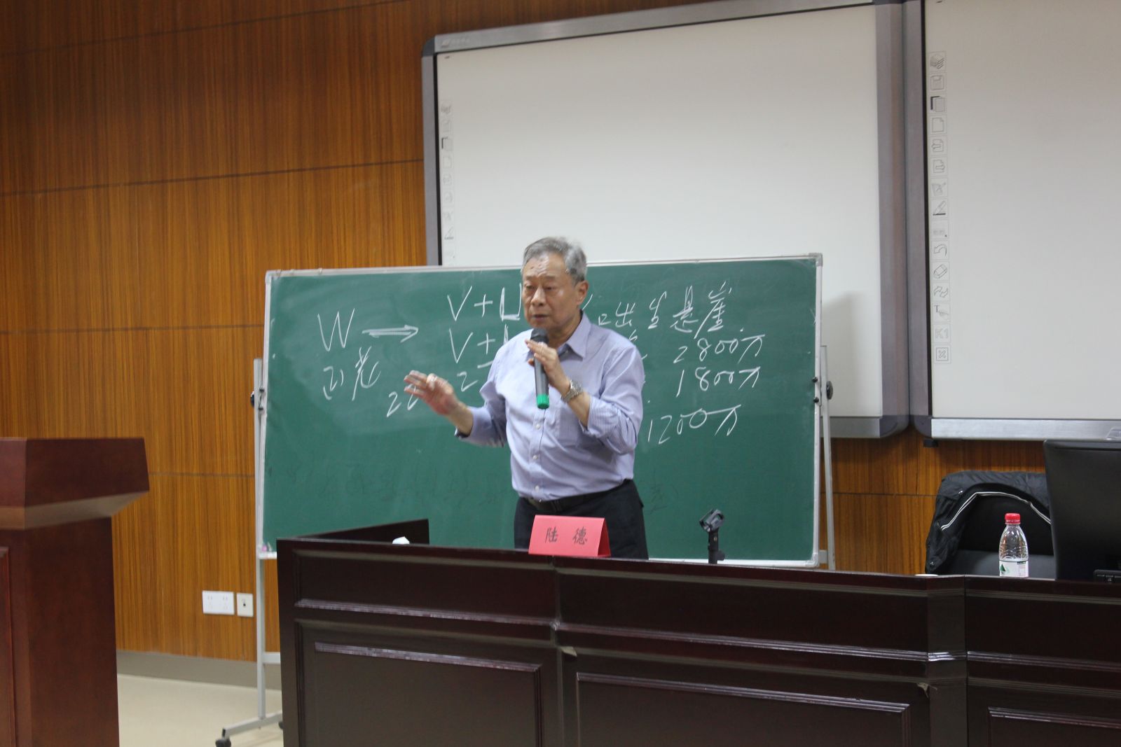 首先,陆院士提出了自己与主流派不同的学术观点:“W”型的特殊复苏轨迹,经济需要两次下滑。正当同学们疑惑之际,陆院士用简洁易懂的语言理论分析了经济周期理论,并清晰地为同学们板书。