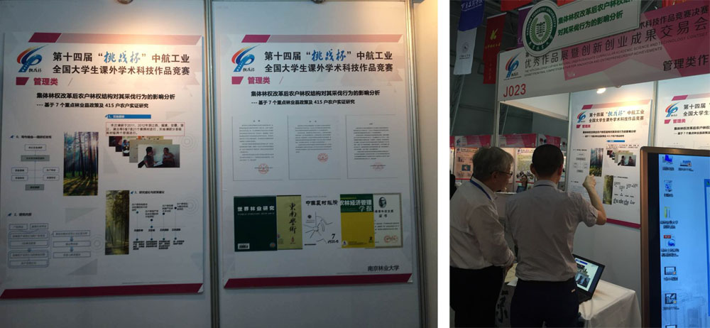 11月20日,由共青团中央、中国科协、教育部、全国学联和广东省人民政府共同主办,广东工业大学、香港科技大学联合承办的第十四届“挑战杯”中航工业全国大学生课外学术科技作品竞赛决赛圆满落幕。由我校经济管理学院张红霄教授指导,2013级博士研究生何文剑同学完成的《林权改革、林权结构与农户采伐行为》从全国参加决赛的318所高校的783件作品中脱颖而出,获全国二等奖,张红霄教授获评“优秀指导教师”。 “挑战杯”全国大学生课外学术科技作品竞赛自1989年起每两年举办一届,已发展成为全国规模最大、最具影响力的大学生科技创新赛事,素有“大学生创新创业奥林匹克”之称。竞赛获奖者中已经产生了两位长江学者,6位国家重点实验室负责人,20多位教授和博士生导师,70%的学生获奖后继续攻读更高层次的学历,近30%的学生出国深造。赛制要求申报参赛的作品分为自然科学类学术论文、哲学社会科学类社会调查报告和学术论文、科技发明制作三类,其中哲学社会科学类社会调查报告和学术论文限定在哲学、经济、社会、法律、教育、管理6个学科内。从哲学社会科学类作品的获奖情况来看,评委更加青睐于社会调查报告,意在鼓励大学生观察社会,从实践中发现问题并进行理论探讨。“挑战杯”全国大学生课外学术科技作品竞赛的赛制符合哲学社会科学类专业的培养目标,我院将进一步按照“挑战杯”的竞赛要求,以竞赛带动学生研究能力和实际运用能力的训练。