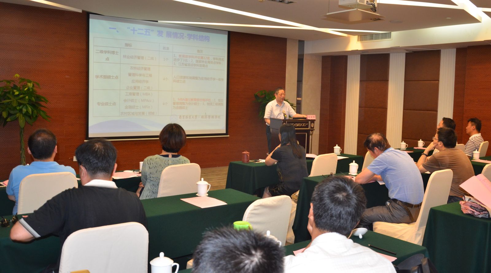 8月13日,我院在金陵之星召开学院学科发展与建设专题研讨会,重点围绕加快学院学科发展与建设、学科合格评估与水平评估、提高研究生培养质量等问题进行了研讨。会议邀请国务院学位办正处级调研员欧百钢作专题辅导报告。全体院领导、学院全体教授、副教授、正副系主任、系支部书记等参加了本次研讨会。 学院党委书记高晓琴通报了暑假学校处级领导干部学习研讨会的主要精神,结合省委组织部副部长胡金波所作的《讲良心 负责任 增本领——关于做合格党员、创一流大学的思考》报告,学校党委书记封超年所做的《以新发展理念为指导推进高水平特色大学建设》报告,并就曹福亮校长关于建设高水平特色大学为目标的工作要求,说明了本次学科建设研讨会的重要意义。 温作民院长就我院“十二五”学科发展情况、目前面临形势、“十三五”学科发展思路及重点工作做了研讨报告,指出加强学科建设必须明确目标定位,厘清发展思路,明晰自身条件,坚持科学布局,加强统筹谋划,并就坚持差异化、非对称、国际化提出了学科建设的主要发展思路。杨红强副院长结合学校近期出台的研究生论文发表的规定,就学院的学科分布、学科评估及要求、学科发展存在的问题等进行了分析,并就加快研究生培养的分类管理、提高研究生科研能力、提升研究生科研贡献等问题进行了说明。 欧百钢处长就全国农林经济管理学科建设比较进行了专题辅导报告,结合国家启动“双一流”建设战略,围绕农林经济管理学科在学科建设、人才培养、学科队伍、科学研究和平台建设等问题做了详细而深刻的分析,并就我院学科建设面临的问题及可能的学科规划调整给出了中肯建议,欧百钢处长还就完善人文社科学科的评价标准体系提出了自己的思路。 辅导报告之后,全体参会人员围绕会议主题进行小组讨论,大家围绕“以学科建设为龙头、全面推进学院发展”,热烈讨论了学院学科“十三五”的重点工作。 本次学院学科建设研讨会虽恰逢假期,但与会教师本着对学院学科发展高度负责的态度,热情参与、各抒己见,通过研讨会,全体参会人员充分认清形势、认识差距、明确目标,并就加快明确教师一级学科归属、重视青年人才引进与培养、加强学术硕士与专业学位分类管理、强化研究生科研能力及科研产出等达成广泛共识。