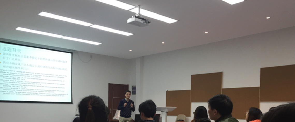 在整个学术沙龙的过程中,彭红军老师以“产出随机下供应链优化与融资模型”这个主题为切入点,使用风趣幽默的语言为我们生动形象的讲述了论文应如何选题,并指出论文选题要具有行业特色与领域意识。与会人员也积极主动地提出科研中所遇到的一些问题,彭老师一一解答。希望各位同学能通过这次学术讲座,对如何进行论文选题并写出特色有了很好的了解,并对我们以后的论文写作有一定的帮助。