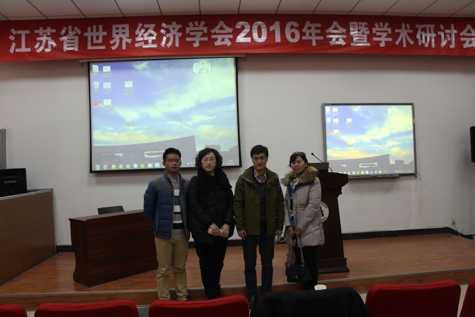 我院彭红军副教授、姚萍老师、耿利敏老师及硕士研究生参加了会议。会议增选杨红强教授为江苏省世界经济学会副秘书长,增选彭红军副教授为江苏省世界经济学会理事。会议评选了优秀学术论文,我院硕士研究生王帅的论文《农业产业结构与城镇化耦合关系制度与分析》获得优秀学术论文二等奖。