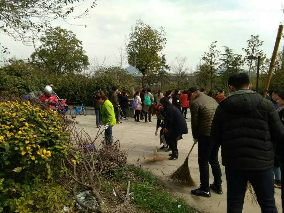 弘扬当代雷锋精神,结合南京林业大学特色,行政支部党员联合新庄社区,对紫金联合立方广场进行环境维护,分别进行了大规模清扫和绿化带维护工作。新庄社区负责人袁芳老师透露“紫金联合立方广场为三不管地带,广场的建立仅为政府与开发商的口头协定,并无文件参考,所以出现了今日的非市政辖区,非物业责任区,非组织盈利区。广场在为社区居民提供休闲娱乐场所的同时还存在一些居民随手丢弃的纸团,烟头,塑料瓶等生活垃圾,却无人进行定期维护。”今年的雷锋日,社区党员和经管院的党员教师一起对广场的环境进行了维护工作。