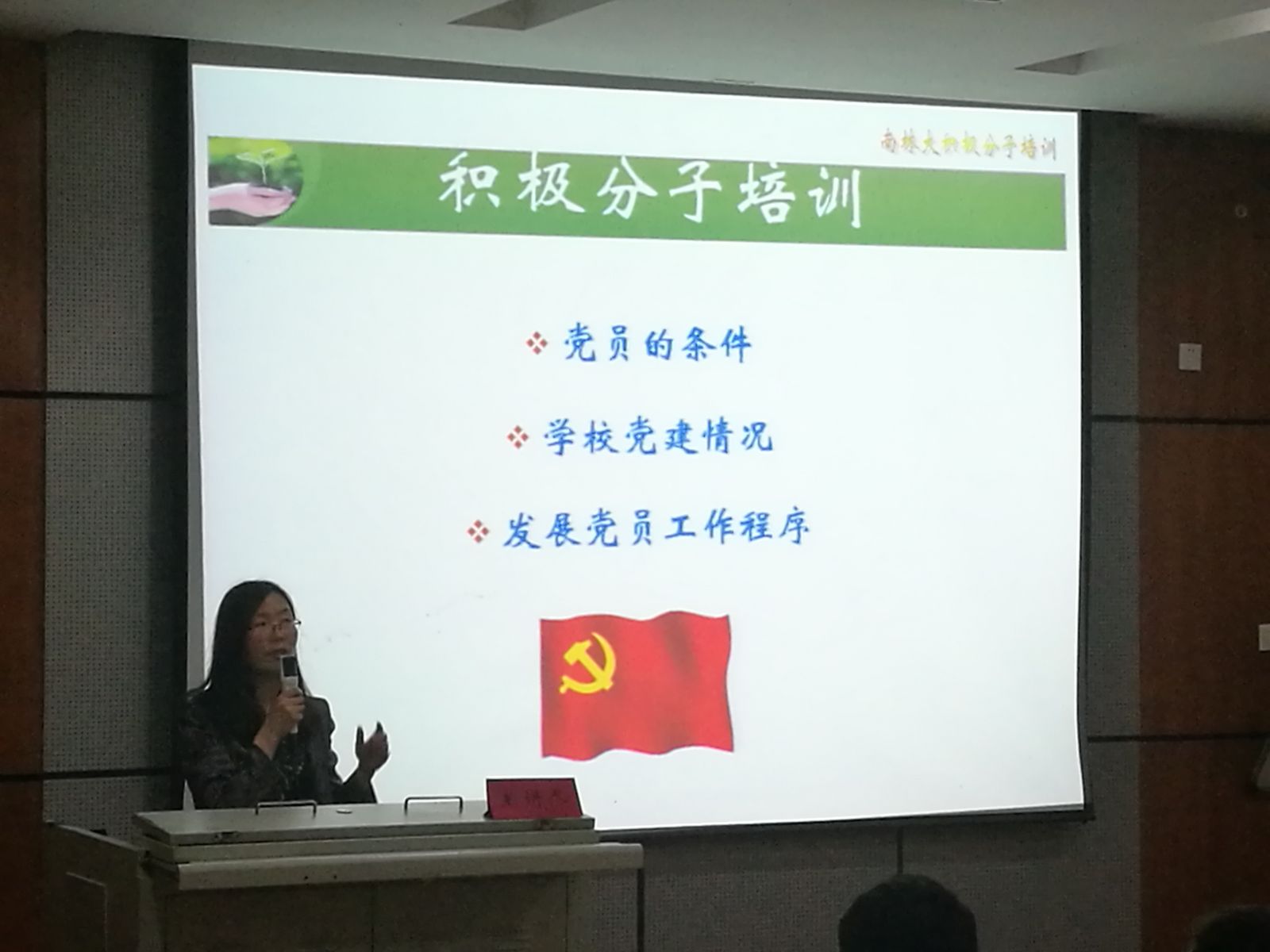 2017年4月17日下午四点半,经济管理学院第35期积极分子暨新党员培训班党课第四讲在阶梯教室一举行。校组织科科长曹莉老师作为此次堂课主讲人。