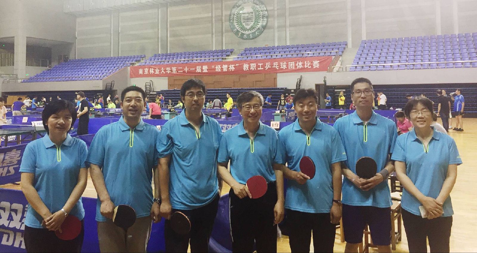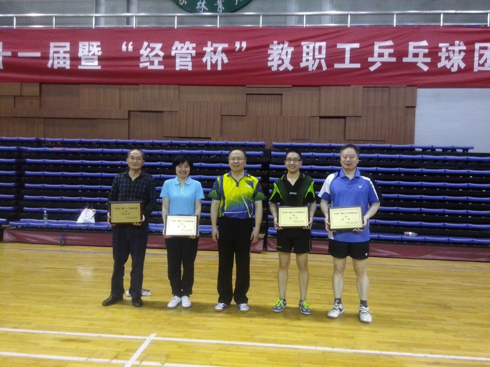 2017年5月13日由我院赞助的校第二十一届暨“经管杯”教职工乒乓球团体比赛在校体育运动中心举行。 我院由张智光、刘子超、潘家坪、谢煜、顾意刚、洪伟和陈建等7位老师组成的乒乓球队参加了全程比赛。在全体队员的奋勇拼搏下,以小组第一名的成绩出线,最终获得B组第三名的好成绩。