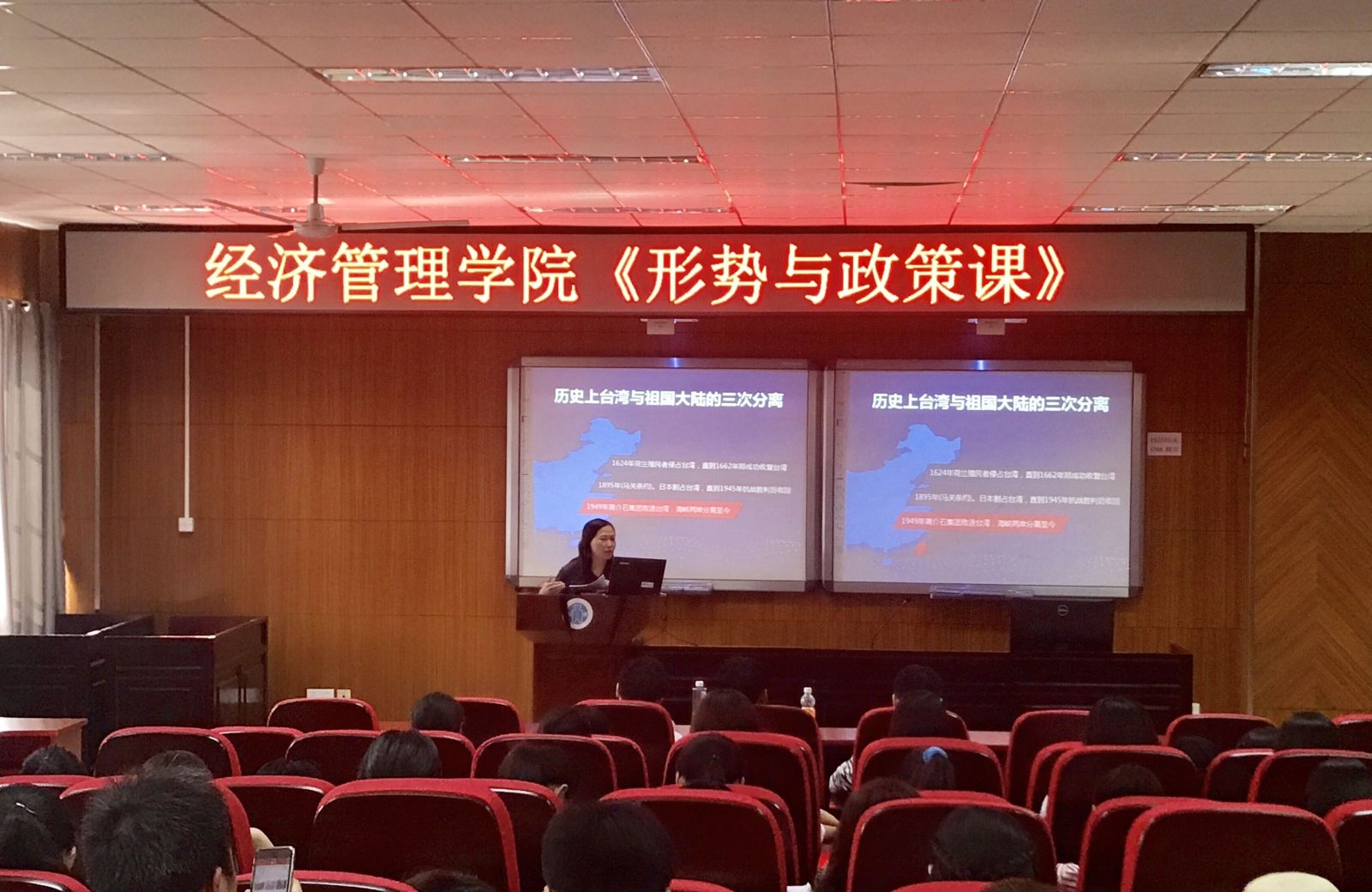 6月17日下午,经管院组织了形势与政策主题教育专题报告会,邀请经济管理学院党委书记高晓琴老师,作了题为“两岸关系及发展新形势”的专题报告。经管院辅导员洪春奇和赵淑颖老师出席,报告会由赵淑颖老师主持。