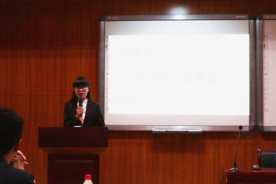 随后,由来自办公室的汤菁晶同学作为新生代表上台发言,从新生的角度讲述了自己初入团工委的感受,表达了作为新干事对未来工作的兴奋与期待。