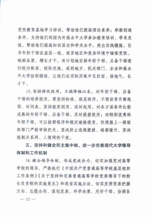 关于进一步加强全省普通高等学校领导班子建设的意见