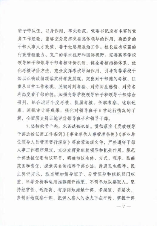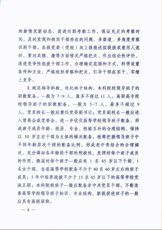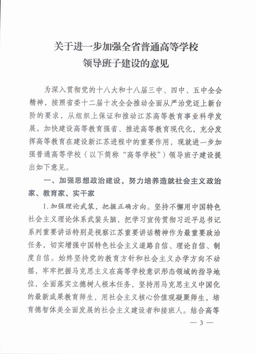 关于进一步加强全省普通高等学校领导班子建设的意见