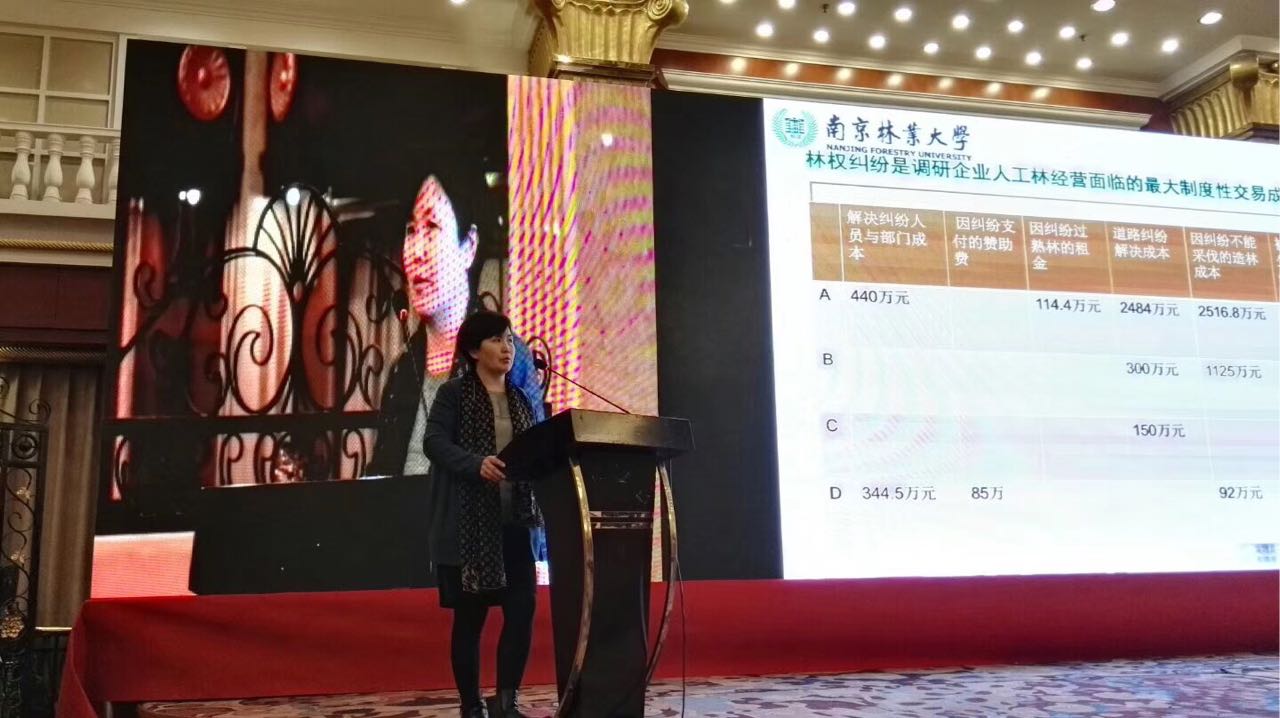 北京大学国家发展研究院副院长徐晋涛教授、北京林业大学马履一教授、WWF世界自然基金会(瑞士)北京代表处王良煜、斯道拉恩索广西林业总经理Ian Blanden作了特邀发言,我院张红霄教授作了题为“降低制度性交易成本,落实与保护人工林经营权 ”的主旨报告。