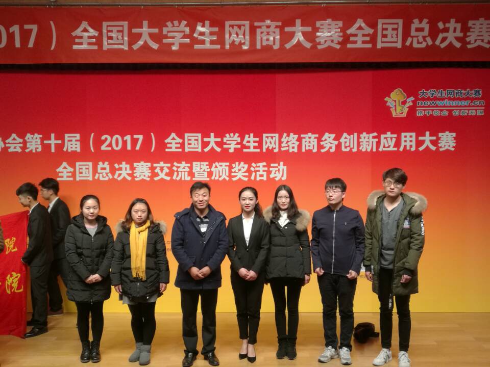2017年12月2日-12月3日,中国互联网协会第十届全国大学生网络商务创新应用大赛全国总决赛在北京举行。由刘子超副书记和管工系郭承龙老师带队指导的HFY团队和焕蓝团队进入总决赛。经过激烈角逐,由电子商务、信息管理、金融专业的董琪、王贤、夏祎涛、王秋艳和许博组队参赛的《斛为伊健有限公司策划书》以及由电子商务专业的丁俊尧、陈昊、王赛、解朝越和张永英组队参赛的《通过大数据分析辅助解决自媒体运营问题》双双获得全国特等奖。