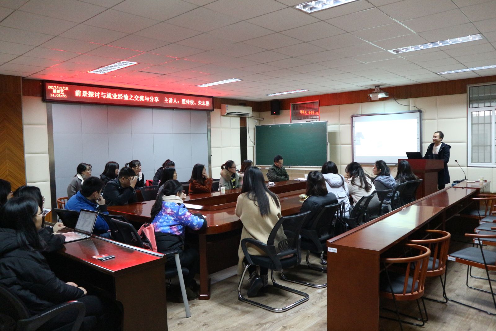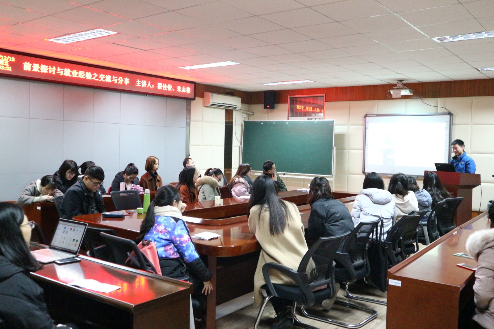 12月15日下午我院翟佳骏、朱志彬两位同学在教11楼208室举行主题为《经管院相关专业前景探讨与就业经验之交流与分享》学术沙龙活动。