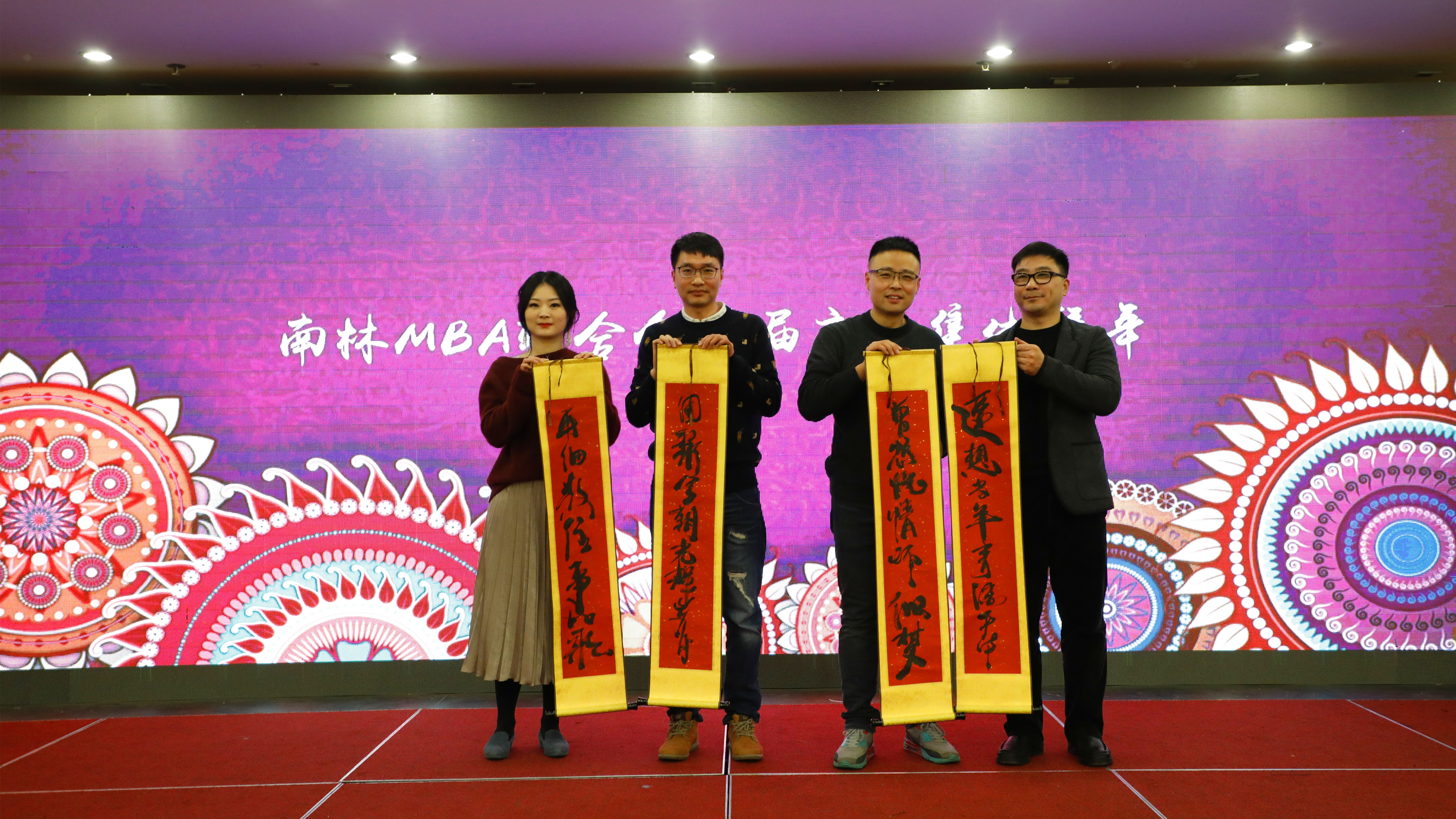 在全场热烈的掌声中,温作民院长登台致新年贺辞。他寄语大家在2018年不忘初心、砥砺奋进,共同创造和分享南林MBA的新征程、新光荣,共同书写和描绘属于南林MBA人的新精彩、新梦想。随后,历届MBA联合会主席、历任班长为大家送上了一幅幅精心构思、富有特色的春联。整场晚会主题大气突出,灯光绚丽多彩,旋律宛转悠扬,舞姿绝美惊艳,将南林精神与MBA特色相结合,古典诗韵与现代时尚相结合,一次次奏出活力四射的炫彩篇章。