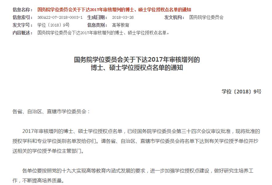 近日, 根据国务院学位委员会《关于下达2017年审核增列的博士、硕士学位授权点名单的通知》(学位〔2018〕9号)的文件,我院成功获批农林经济管理一级学科博士点,至此,我院农林经济管理学科形成了包括本科、硕士、博士多层次的人才培养体系。此次学位授权点申报工作取得开创性突破,标志着学院学科建设跃上了一个新台阶,为学校“双一流”建设及高水平百强大学建设打下坚实基础。
