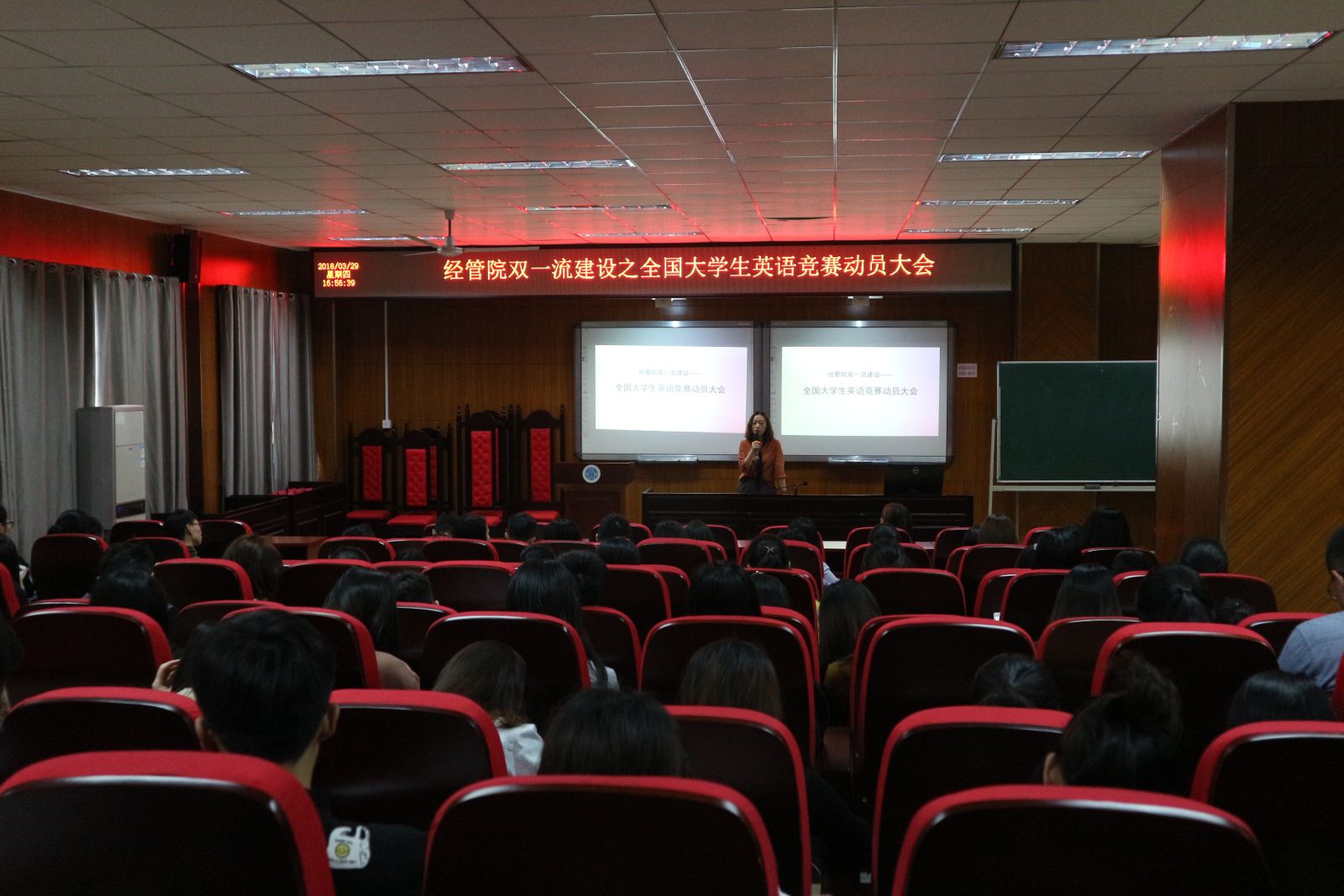 2018年3月29日下午4点半,为了响应学校第十六次党代会提出的建设高水平特色大学的目标,我院在C105教室举办了全国大学生英语竞赛动员大会,参加本次动员大会的有研究生辅导员洪春奇老师、17级辅导员谢冰清老师和本科一二年级、研究生一年级的部分同学。