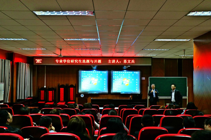 南京林业大学经济管理学院杨加猛院长首先对苏文兵教授的到来表示感谢,然后强调了论文选题的重要性,希望同学们提前为毕业论文做好准备。