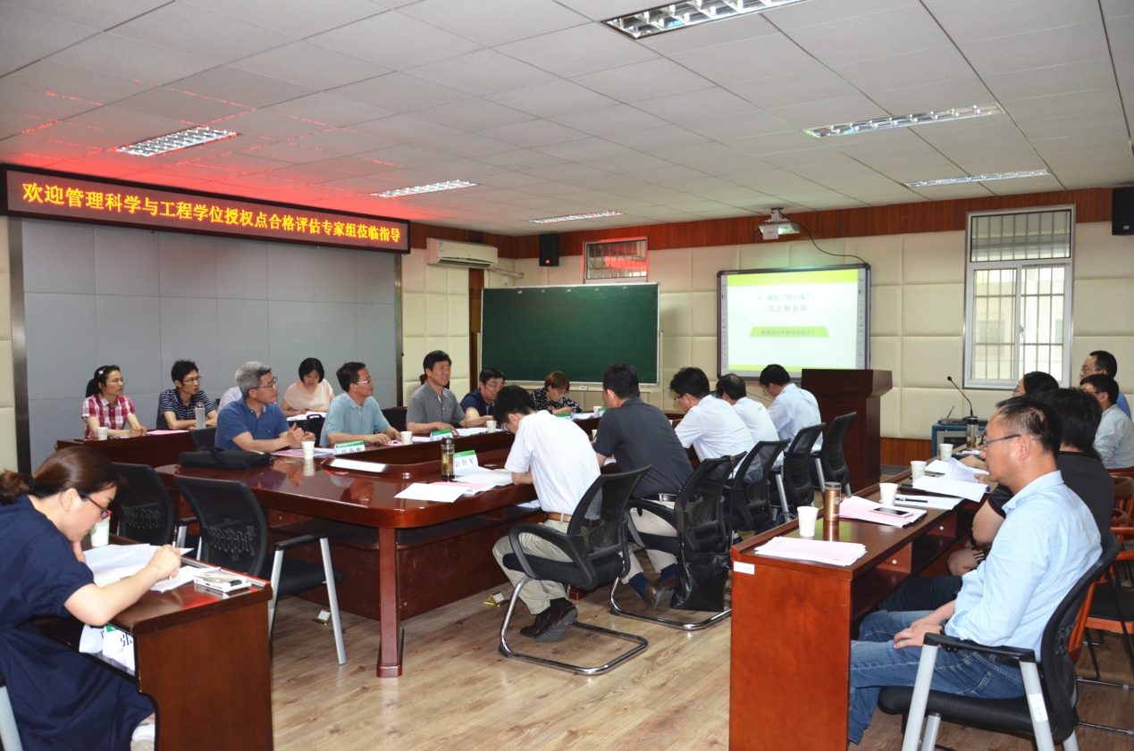 5月17日,我校管理科学与工程一级硕士学位授权点自评估评审会在经济管理学院举行。评审专家组由国务院管理科学与工程学科评议组成员、南京信息工程大学李廉水教授,教育部管理科学与工程专业教学指导委员会成员、东南大学仲伟俊教授,南京大学周晶教授,南京理工大学宋华明教授,南京审计大学马少辉教授组成。学校总会计师周乃贵,校发展规划与学科建设处处长杨平,学院党委书记魏勇,管理科学与工程学科带头人、学术骨干以及教师和研究生代表等参加会议。会议评审环节由李廉水教授主持。 经济管理学院副院长(主持工作)杨加猛汇报了学位授权点建设情况。专家组认真听取了汇报,现场察看了硕士学位论文等档案资料、以及教学与实验室等教学条件建设情况。对照教育部《管理科学与工程一级学科硕士学位基本要求》和《管理科学与工程硕士学位授权点申请基本条件》,经质询和讨论,专家组认为:该硕士学位授权点培养目标明确,研究方向规范且具有鲜明特色,师资队伍结构合理,人才培养方案科学可行,教学科研支撑条件较好,教学保障制度完善,研究生学位论文质量较高,就业率高且受到用人单位广泛好评。 专家组一致认为,我校管理科学与工程一级硕士学位授权点建设整体水平优秀,通过评估。建议学校进一步加大投入,加大高水平人才的引进和培养力度,适当增加研究生招生数量。