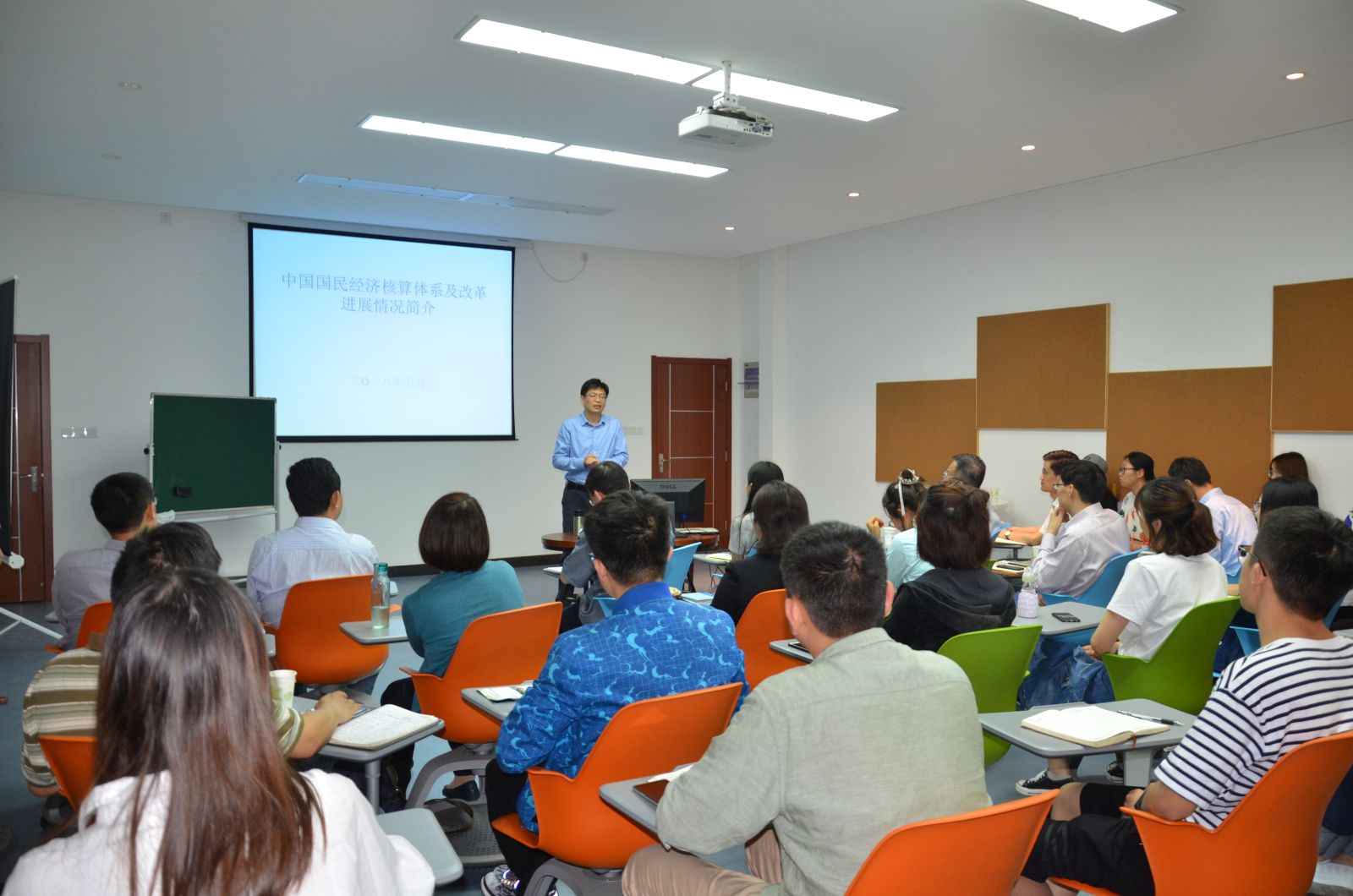 5月23日下午,南林“水杉经世大讲堂”第5期讲座在教11楼B138举行。江苏省“333高层次人才培养工程”和“江苏省中青年领军人才”入选人、南京林业大学总会计师周乃贵高级统计师作了“中国国民经济核算体系及改革进展情况”的专题讲座。经济管理学院党委书记魏勇、副院长(主持工作)杨加猛、党委副书记蔡志敏、副院长彭红军及50余名教师、研究生参加了讲座。讲座由杨加猛主持。
