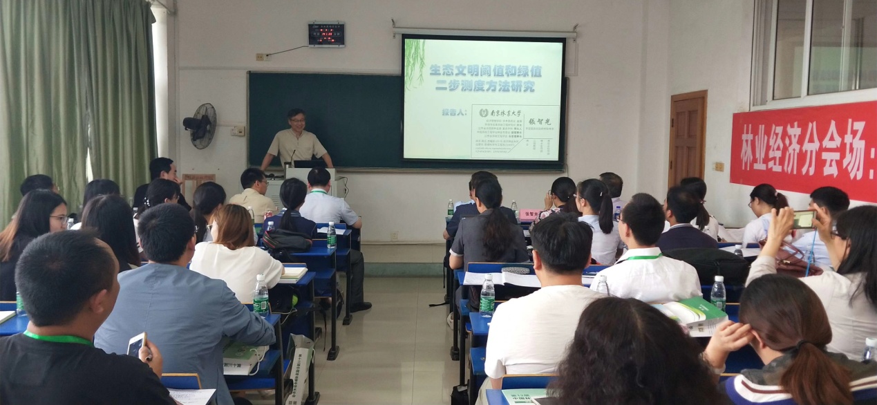 2018年6月2日-3日,第13届中国林业青年学术年会在江西农业大学召开。本届年会共设12个分会场,我院承办林业经济分会场学术年会。来自北京林业大学、南京林业大学、东北林业大学、浙江农林大学、西南林业大学、河北农业大学、江西农业大学、江西财经大学、北京农学院、中国林科院林业科技信息研究所、浙江省林业科学研究院、江西省林业科学研究院、山西省林业科学研究院等高校和科研院所的50余位专家学者和研究生参会交流。 为期两天的年会活动中,林业经济会场共作学术报告20场。我院张智光教授应邀作了题为“生态文明阈值和绿值二步测度方法研究”的特邀报告。陈书林副教授和谢海涛博士分别作了题为“定量估算土地利用变化对植被净初级生产力的影响研究”和“林业绿色供应链全产业协作绩效影响因素研究—基于SEM方法”的主题报告。博士生廖冰、张薇,硕士生童国平、徐士莹、周丽霞等也分别作了“林业及其三次产业对生态文明的贡献率测算研究”、“面向生态文明的林纸供应链碳减排合作研究”、“基于改进的突变级数法的淮河流域水环境-社会-经济系统协调发展水平研究”、“中国造纸及纸制品业碳排放因素分解与减排潜力分析”、“林权权属纠纷的集体行动研究”等专题报告。副院长(主持工作)杨加猛主持林业经济分会场特邀报告,党委书记魏勇为年会优秀专题报告人颁发荣誉证书。 会议期间,中国林学会举行了第七届梁希青年论文奖和梁希优秀学子奖颁奖仪式。我院陈书林副教授的论文“The response of the net primary production of Moso bamboo forest to the On and Off-year management: A case study in Anji County, Zhejiang, China”获得第七届梁希青年论文奖一等奖,何正霞博士的论文“Investigating external and internal pressures on corporate environmental behavior in papermaking enterprises of China”获得二等奖,2016级硕士研究生耿爱欣获得第七届梁希优秀学子奖。