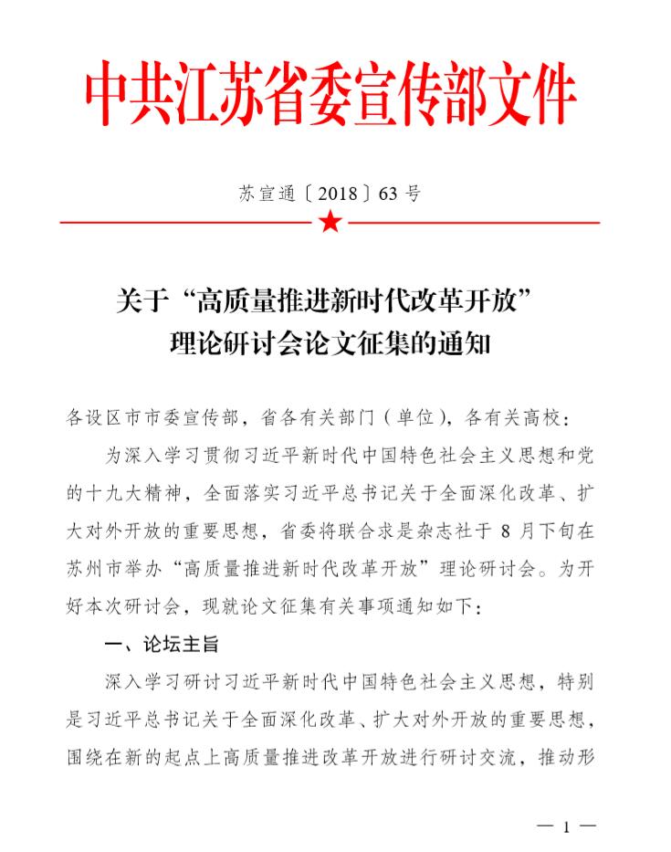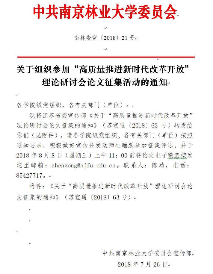 关于组织参加“高质量推进新时代改革开放”理论研讨会论文征集活动的通知