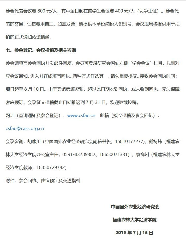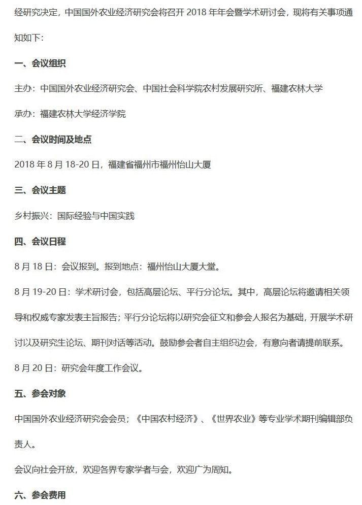 中国国外农业经济研究会2018年年会暨学术研讨会通知