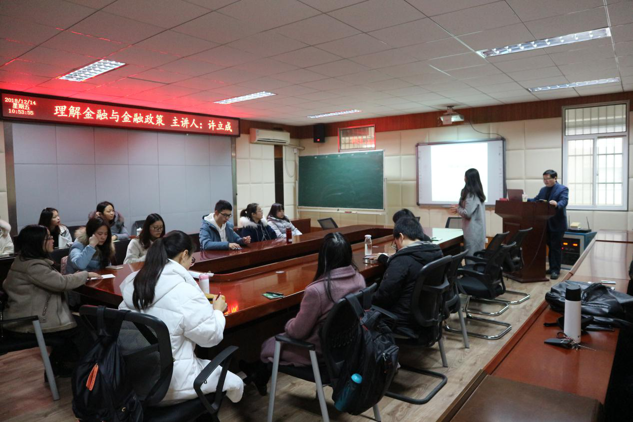 12月16日上午,我院邀请许立成老师在教11楼C208教室举行题为“理解金融与金融政策”的研究生“水杉”学术讲堂活动。许立成老师是江苏省金融研究院特约研究员,主要专注于现代金融发展理论、中国银行业发展和监管历史等方面的研究,在《金融研究》、《经济学动态》等刊物上发表学术论文20余篇,论文曾荣获中国制度经济学年会一等奖、中国银监会系统青年论坛一等奖等。