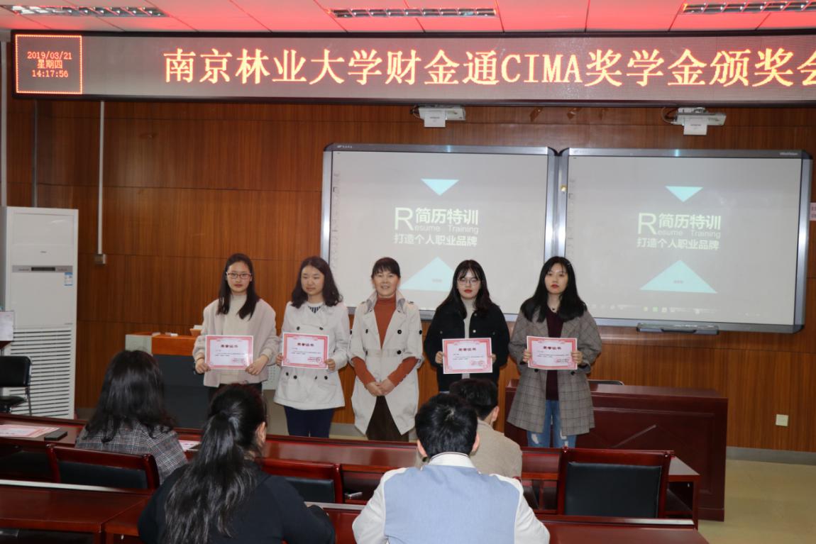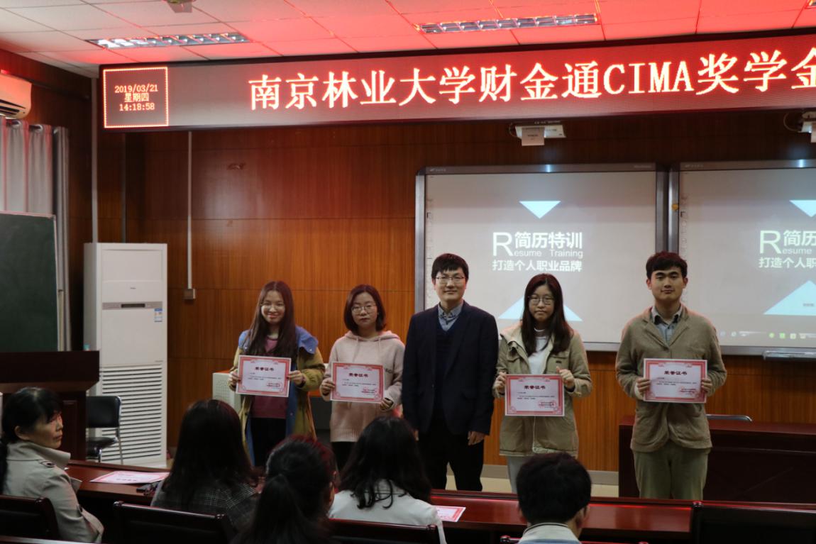 3月21日下午两点,南京林业大学财金通CIMA奖学金颁奖会在经济管理学院C103会议室举行。经济管理学院张晖副院长,会计系乔玉洋主任,财金通南京分公司总经理董增以及CIMA方向班同学参加了此次活动。