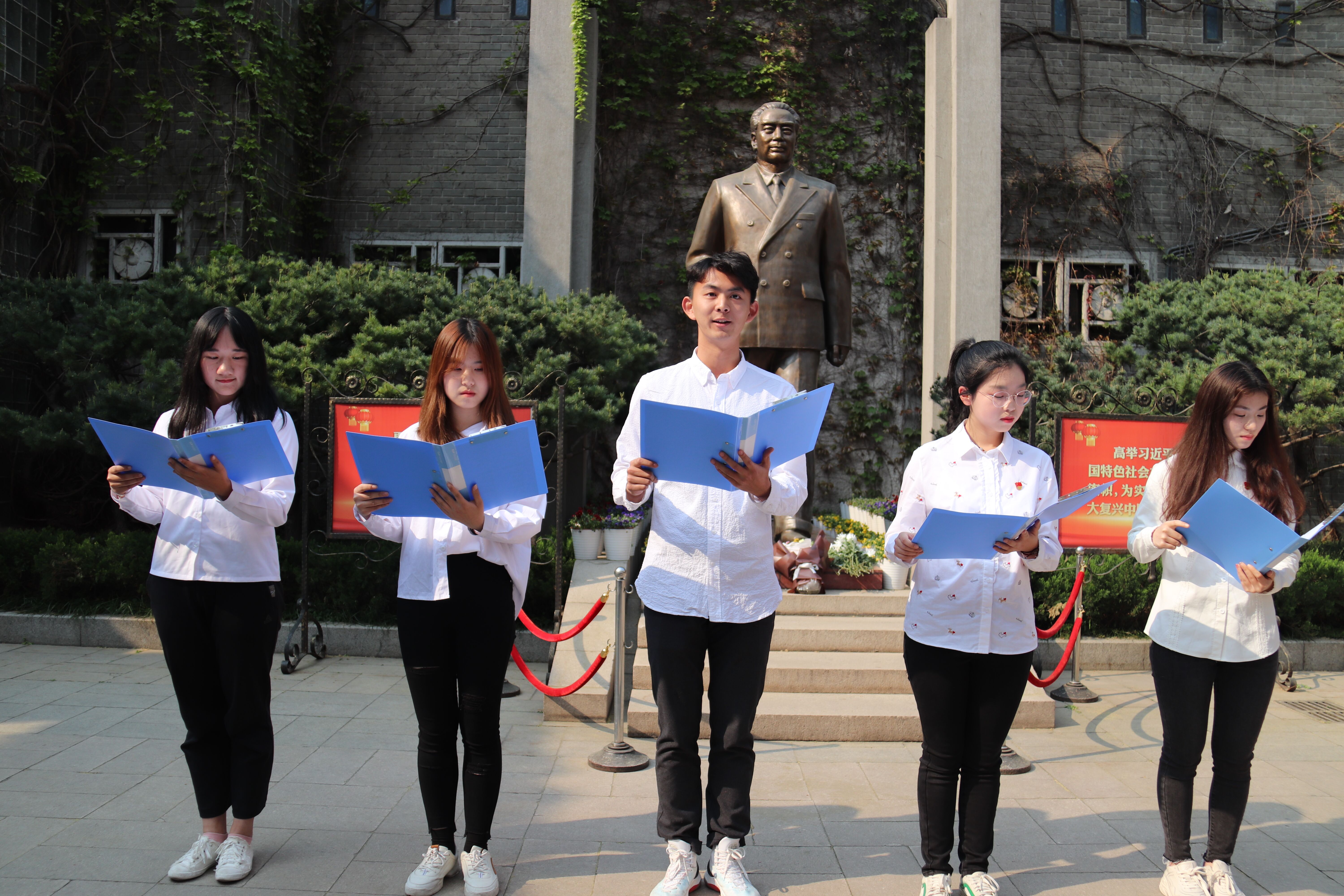 最后积极分子代表颜天承、房婧等同学表演了诗朗诵《永远怀念周总理》,在琅琅诗声中结束了此次教育活动。积极分子代表杞书谊说:“今天我们重温历史,既是为了缅怀为新中国建设英勇献身的先烈,同时也是为了珍惜和平和开创未来。梅园精神将永远激励我们前进!“