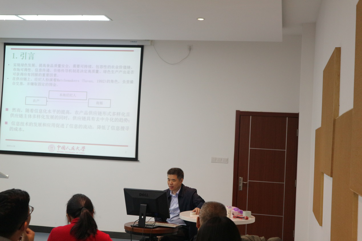 4月26日上午,我院邀请马九杰教授在教11楼B138教室举行题为“信息技术应用能否替代本地经纪人的作用:对马铃薯供应链信息传递与质价匹配效应的考察”的学术讲座。马九杰教授是博士生导师,中国人民大学农村经济与金融研究所常务副所长。兼任中国系统工程学会农业系统工程专业委员会副主任、中国农业工程学会农业系统工程专业委员会副主任、中国农村金融学会常务理事、中国农村财经研究会常务理事、中国合作经济学会合作金融专业委员会常务理事、中国金融学会农业政策性金融专业委员会理事、北京农业经济学会理事。主要研究领域:农村金融与普惠金融、农业价值链金融与食品供应链转型、农业标准经济分析与食品质量安全链管理、农村风险管理与保险、发展经济学与反贫困政策、城乡关系与劳动力转移等。近年来主持国家自然科学基金、国家社科基金项目及省部级项目20余项。在《管理世界》、《经济研究》、《中国软科学》、《金融研究》、《改革》等杂志发表学术论文100余篇。