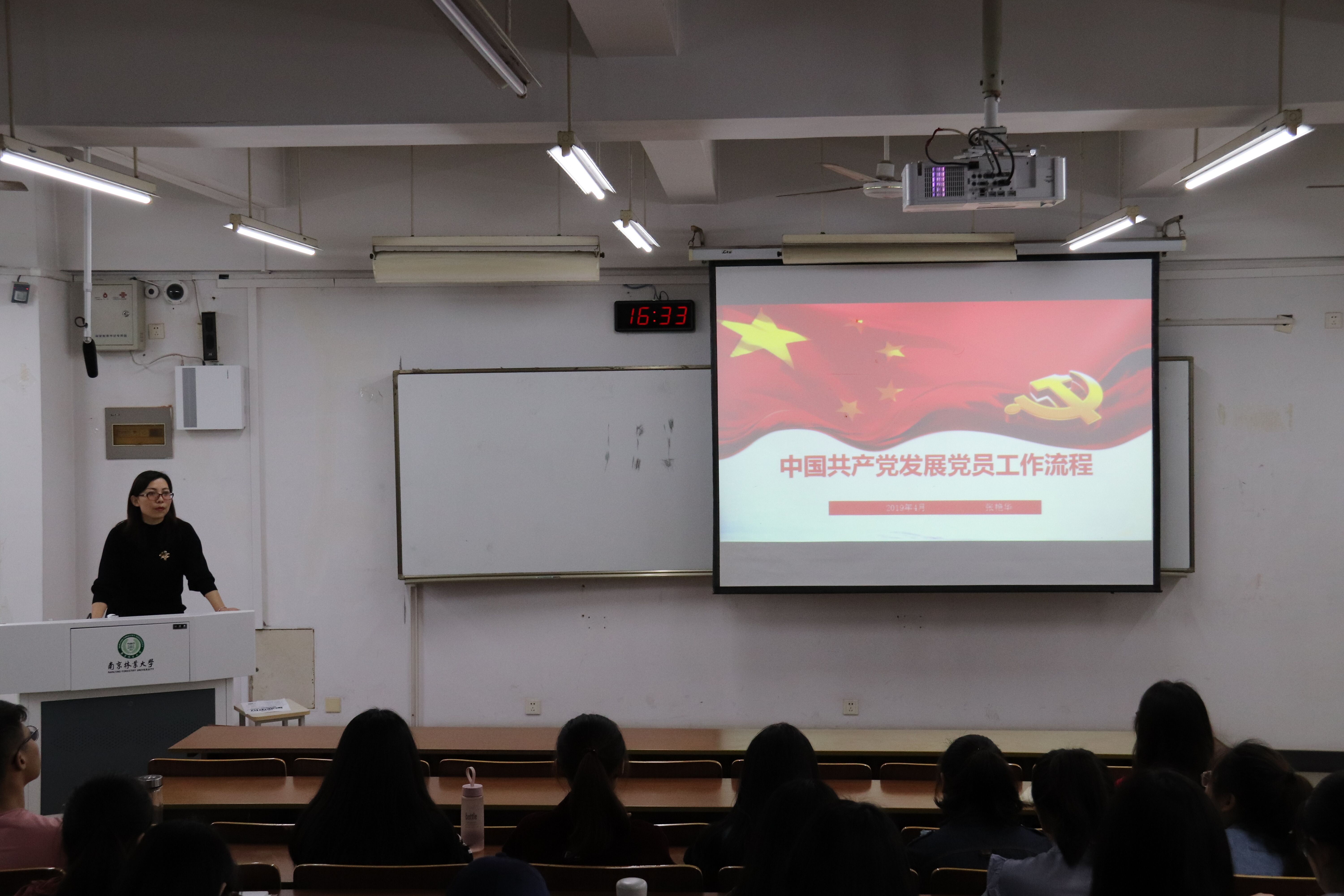 二、2019年4月22日下午四点半,经济管理学院第三十九期积极分子暨新党员培训班党课在教五楼50322举行。本次党课由张艳华老师主讲,主要内容为中国共产党发展党员工作流程。