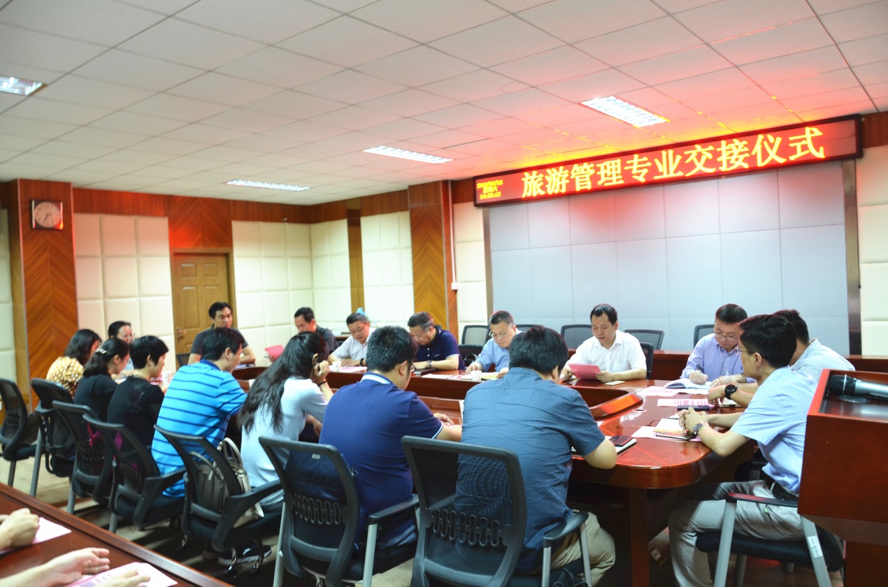 根据南京林业大学《本科专业结构优化调整方案》的文件精神,7月13日,我院顺利完成旅游管理本科专业交接仪式。校党委常委、副校长勇强,人事处处长闵永军,校教学评估办主任、高等教育研究所所长周统建,人文院院长王全权,经管院全体班子成员,旅游管理专业教师以及经管院院办主任、团委书记、各系系主任代表出席交接仪式。