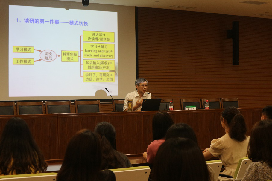 新生见面会后,学院张智光教授为大家带来了开学第一课:《研究生第一课:从学霸到研霸的蜕变》。张教授围绕开启科研模式、鼓足科研勇气、走出创新误区、升级创新大脑、坚守学术底线这五个方面例举了刚步入研究生阶段的同学们在学习中常见问题,鼓励大家在做研究的过程中要注重培养自己的创新精神,解决尚未解决的问题。