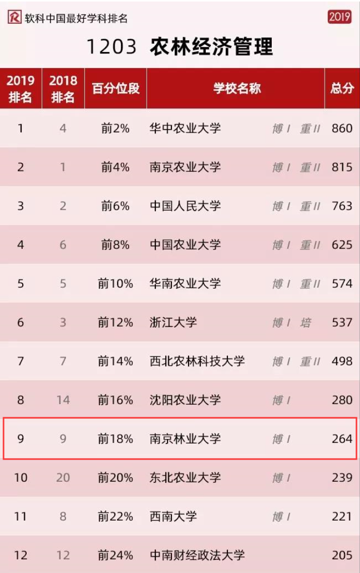 2019年10月30日,上海软科正式发布“2019中国最好学科排名”,我院农林经济管理学科位列“2019中国最好学科排名--1203农林经济管理”全国第9名。