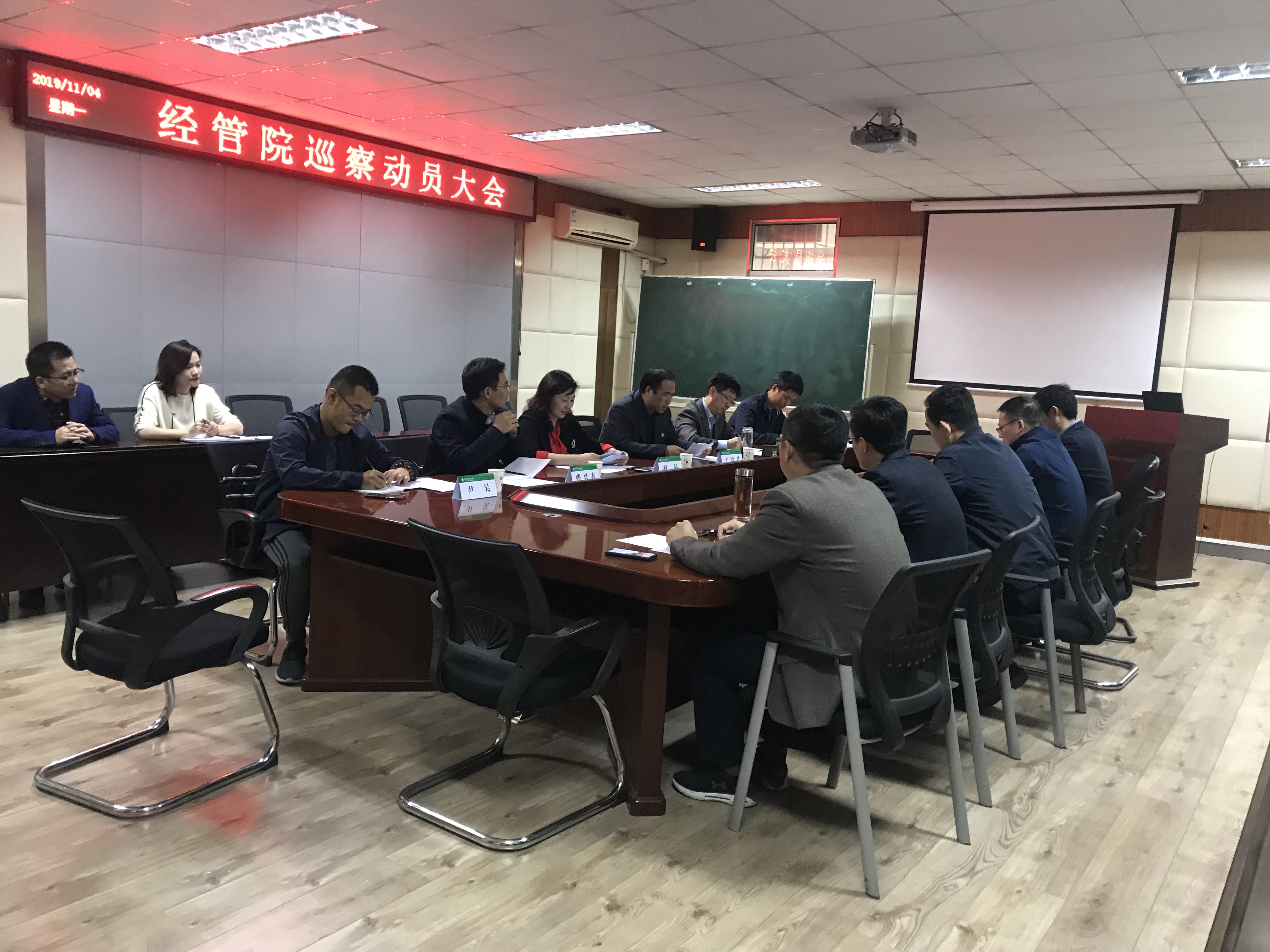 11月4日上午10点,经济管理学院党委召开巡察动员暨民主测评大会。根据《关于印发<南京林业大学第十六届党委第三轮巡察工作实施方案>的通知(南林委〔2019〕21号)》文件精神和校党委2019年全面从严治党工作部署,校党委第三轮巡察工作第一巡察组组长、校党委副书记王培君和巡察组全体成员出席会议,院领导班子、教职工党支部书记、系室主任、团委书记、工会主席、辅导员等参加会议。会议由巡查组副组长、校党委常委、统战部部长赵晶主持。