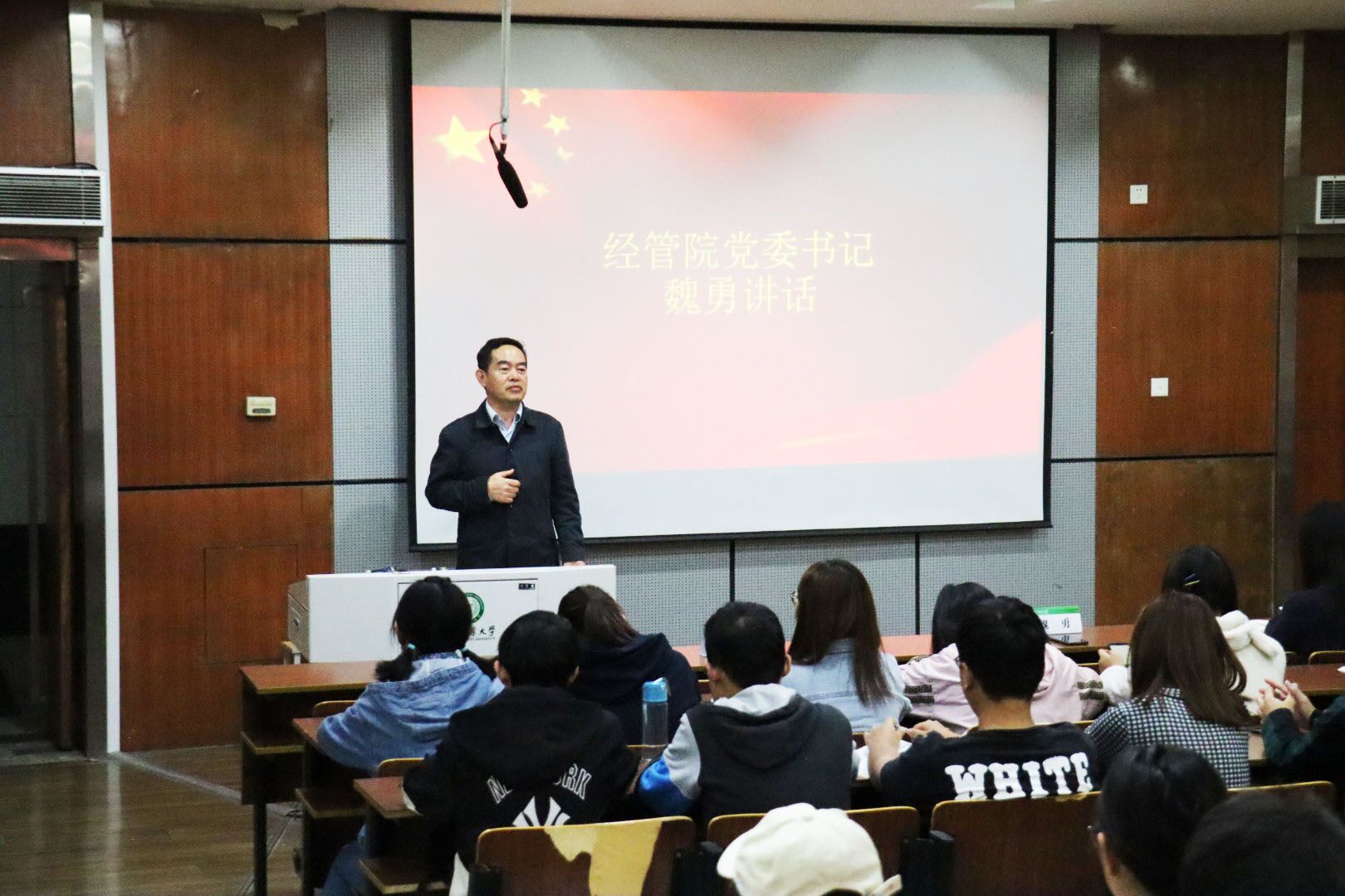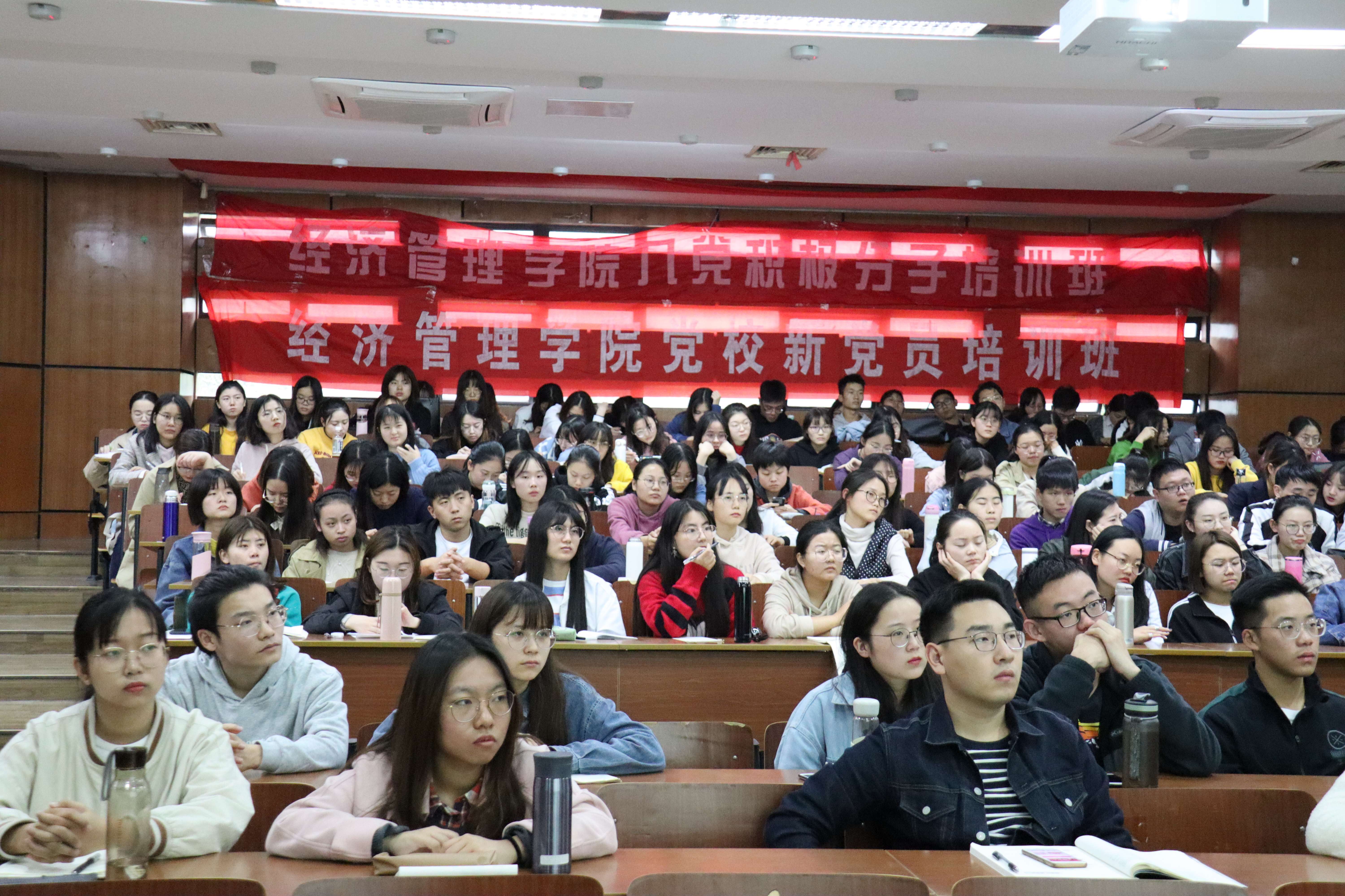 2019年11月12日,经济管理学院第40期积极分子培训班暨2019年新党员培训班开班仪式在南京林业大学教学五楼阶梯四教室顺利进行,大会由经管院党委书记魏勇主持并围绕“不忘初心,牢记使命”主题发表讲话,经济管理学院团委书记、党委委员洪春奇老师,党委组织员赵淑颖老师和250多名同学参加了本次开班仪式。