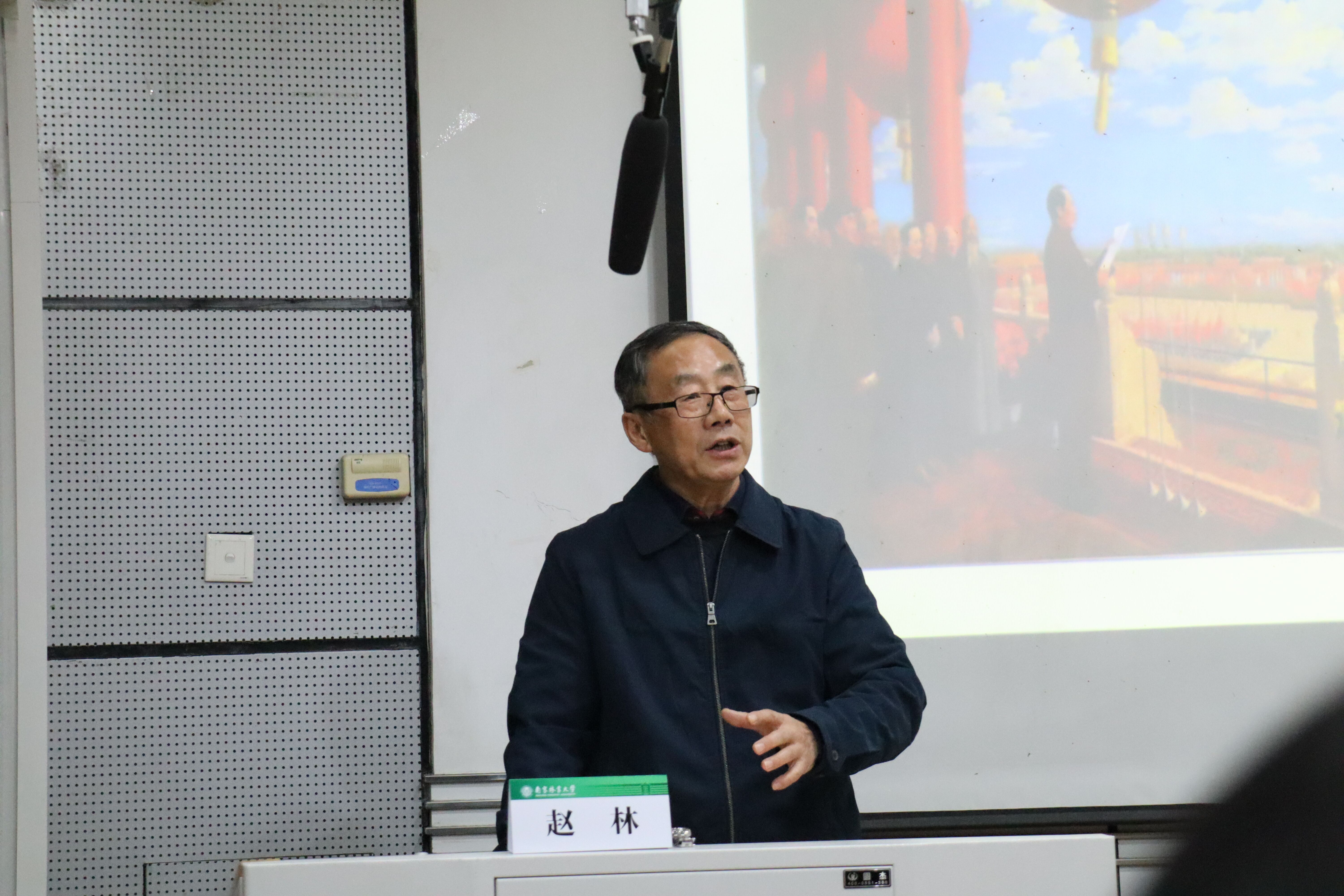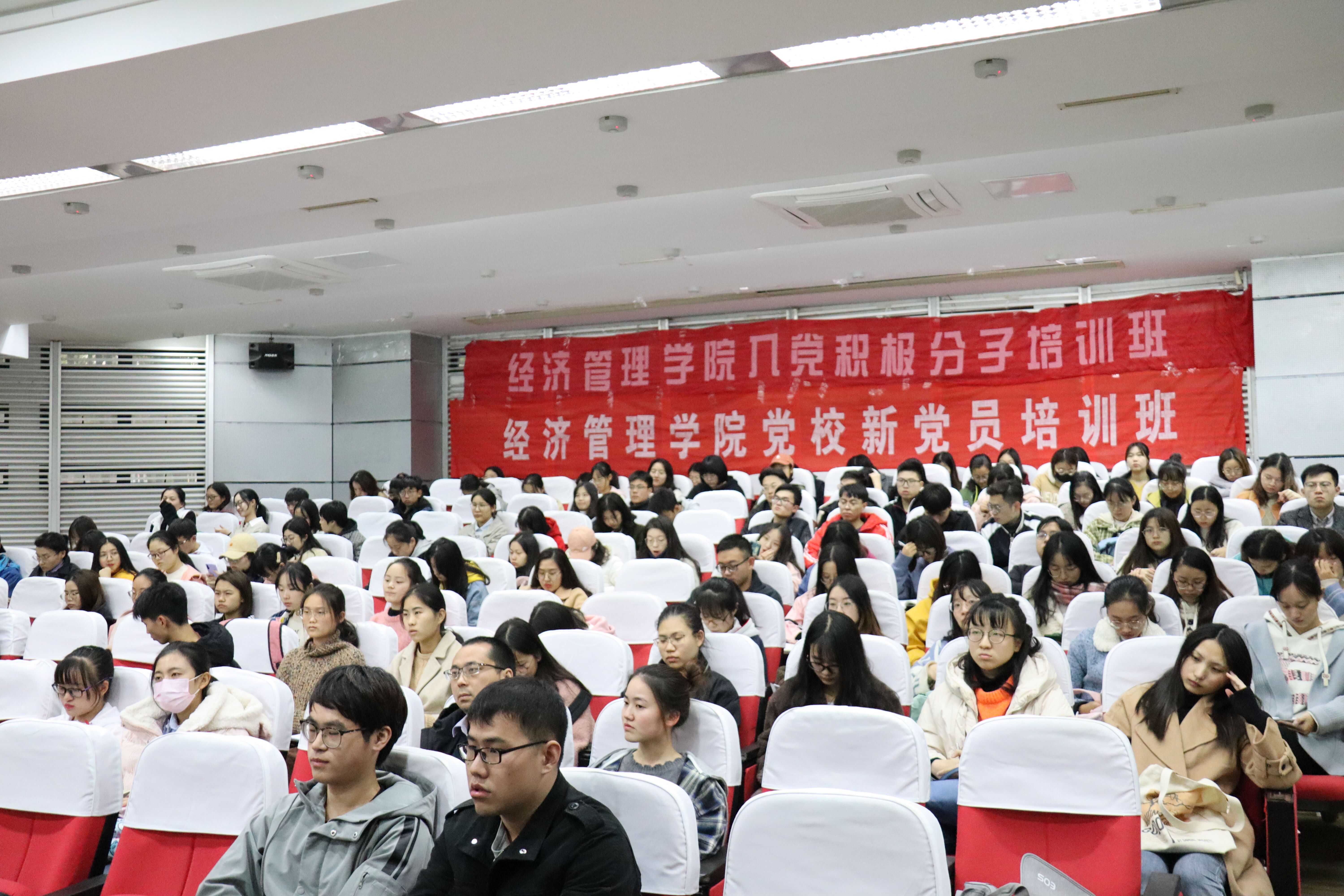 2019年11月18日,经济管理学院2019年新党员培训班暨第40期积极分子培训班第二讲在教学五楼阶梯教室二顺利进行,此次党课由校关工委常务副主任、原副校长赵林老师主讲,经济管理学院19级辅导员冯金小老师、全体新党员及积极分子参加了本次党课。此次党课的主题为“没有共产党,就没有新中国”,党课深入围绕“不忘初心,牢记使命”主题教育这一主线,让在场的师生接受了一次触及灵魂的精神和党性洗礼。