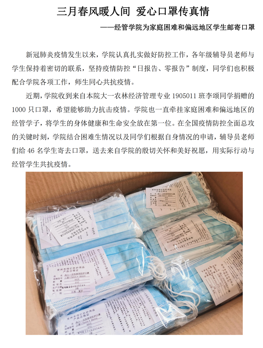 三月春风暖人间 爱心口罩传真情