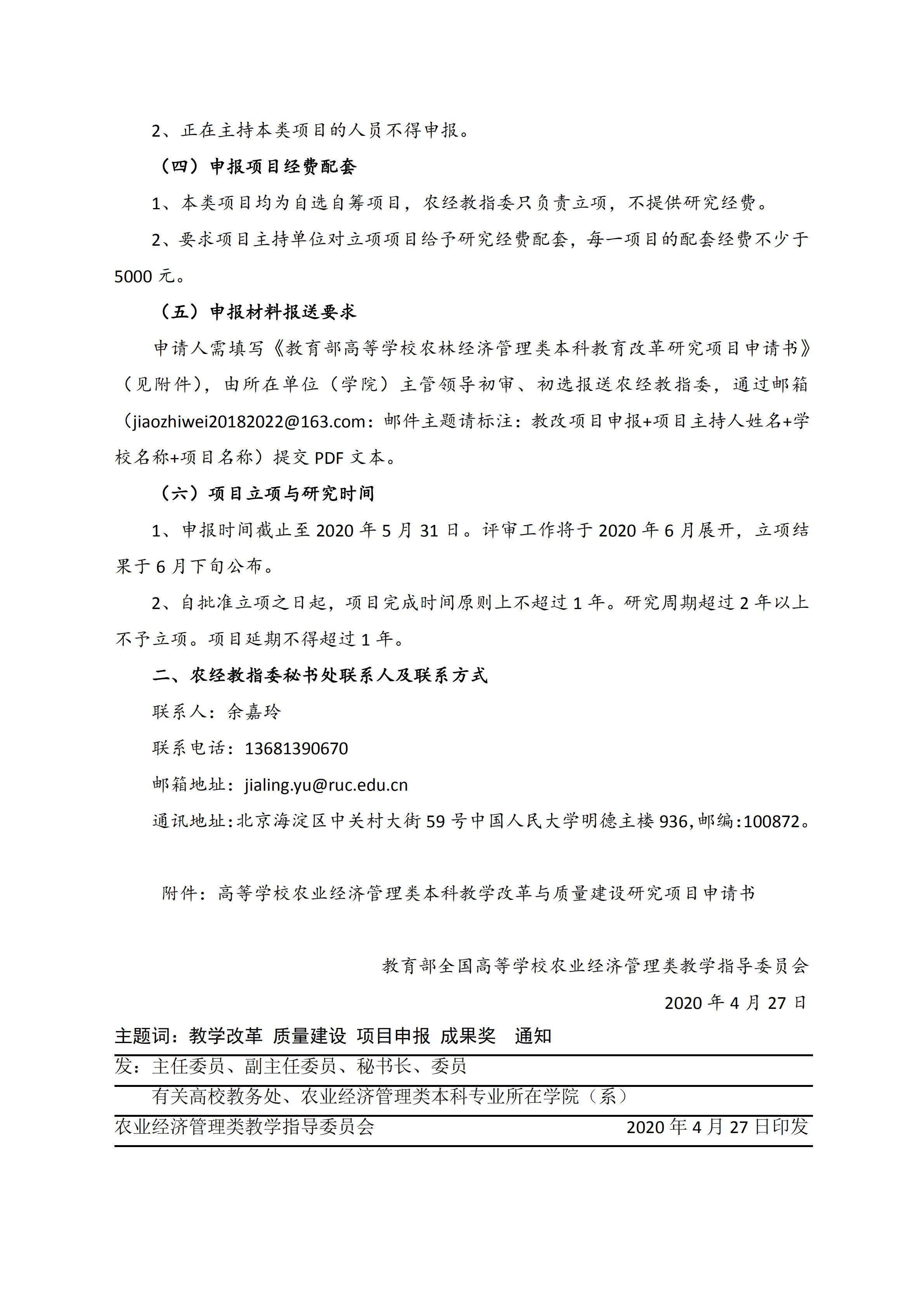 附件:高等学校农业经济管理类本科教学改革与质量建设研究项目申请书