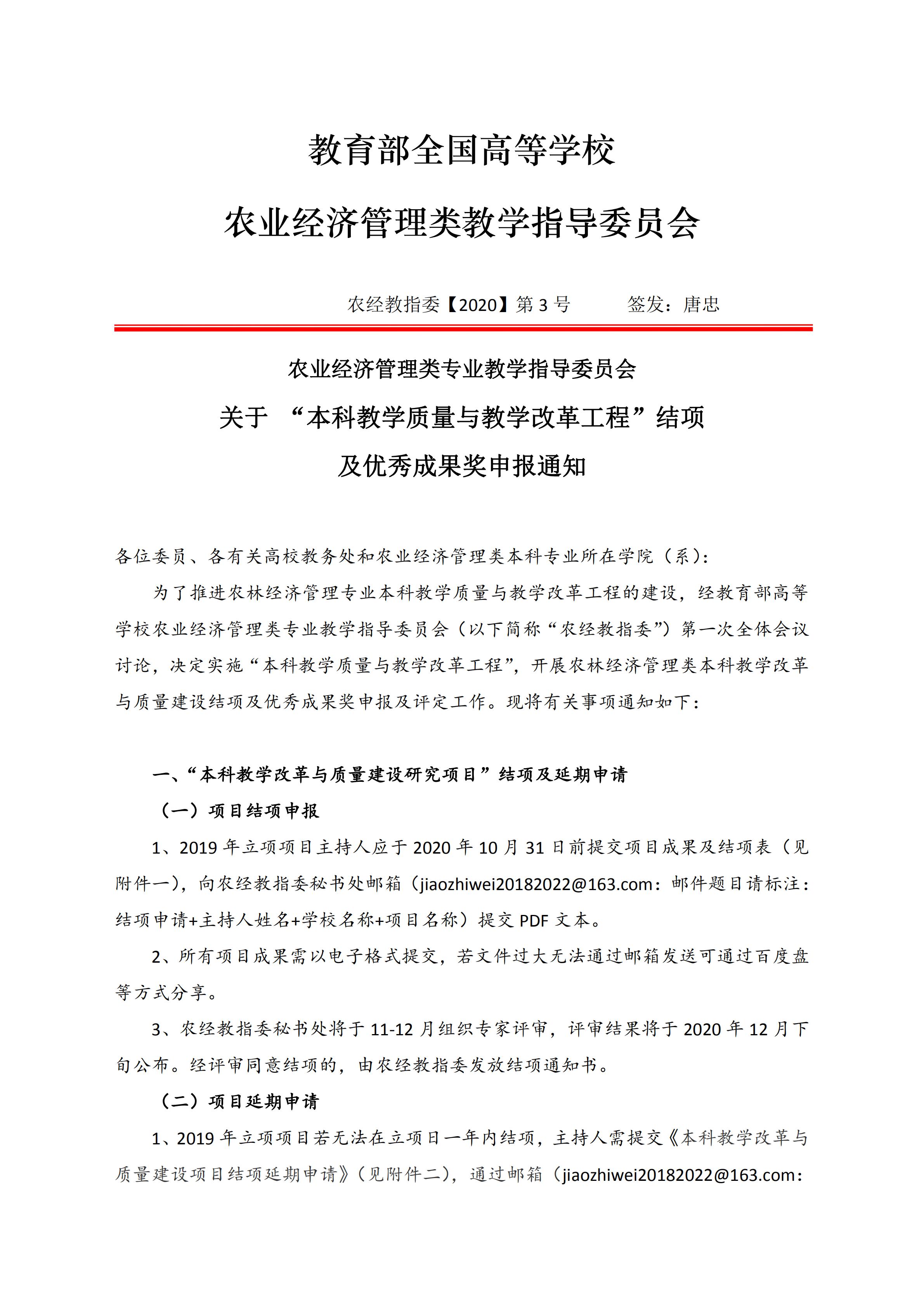 高等学校农业经济管理类本科教学改革与质量建设相关附件