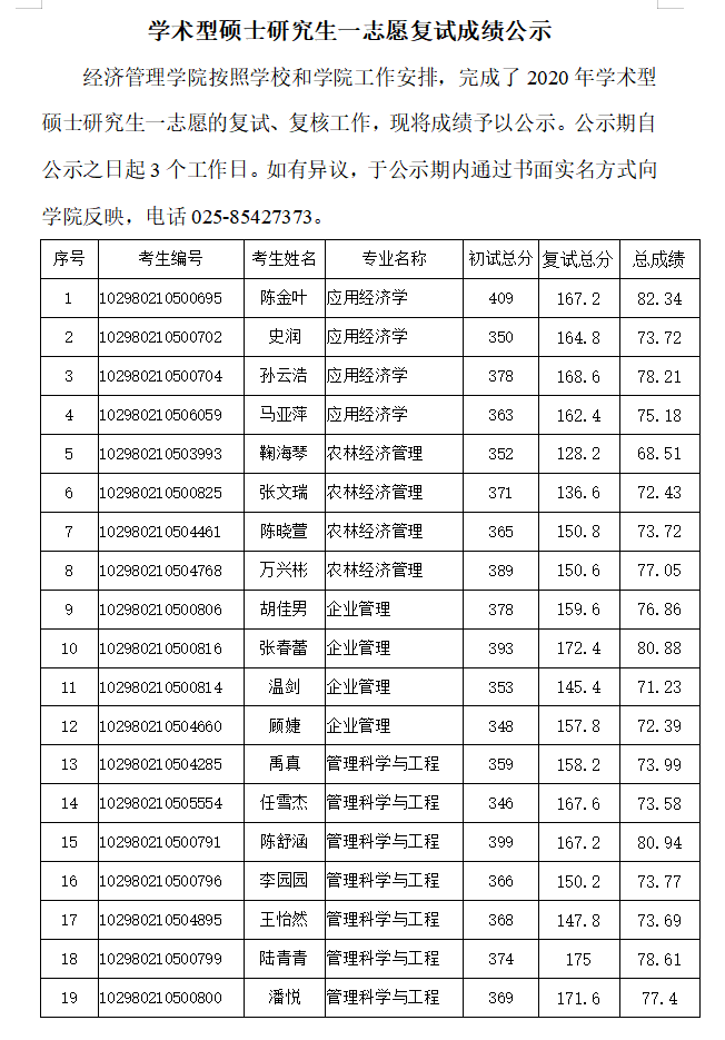 2024-2025学年经济管理学院研究生学业奖学金名单公示