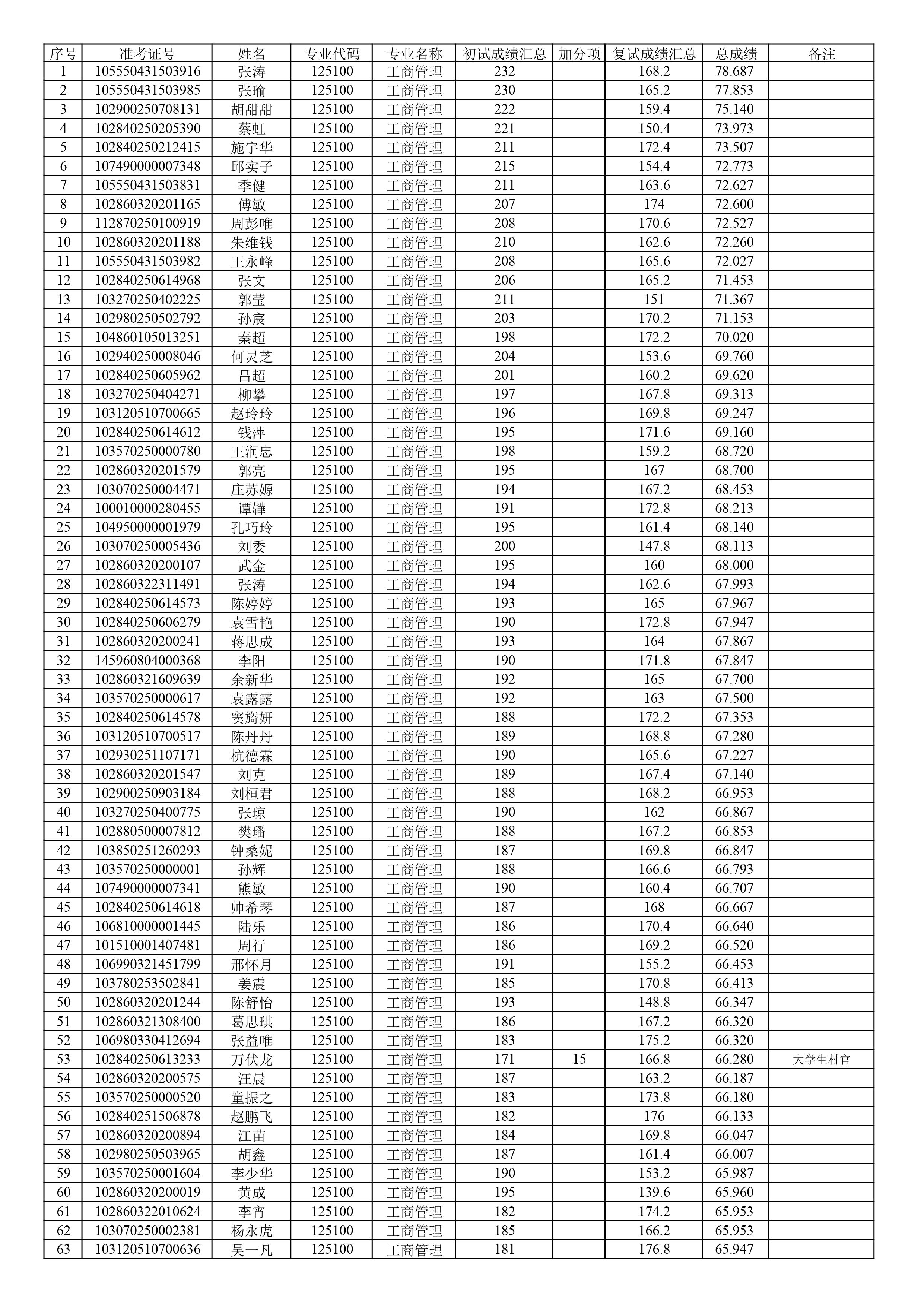 济管理学院按照学校和本院工作安排,完成2020年工商管理硕士研究生调剂复试、复核工作,现将成绩予以公示。公示期自公示之日起3个工作日。如有异议,于公示期内通过书面实名方式向学院反映,电话025-85428199。